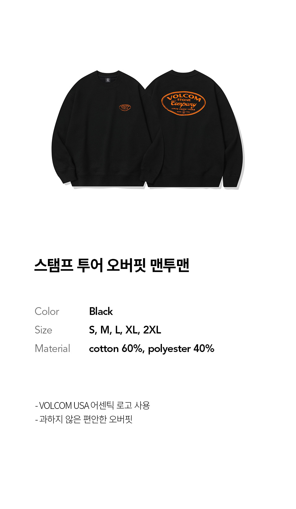 볼컴 스탬프 투어 오버핏 맨투맨 블랙