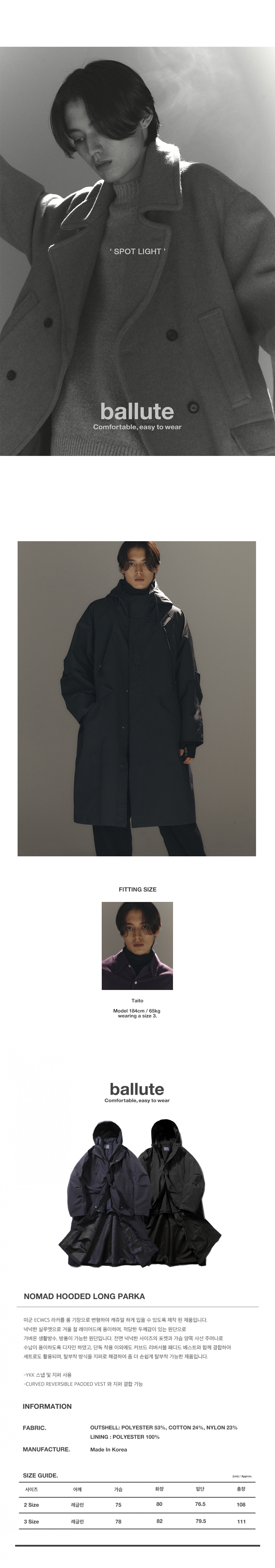 발루트 노마드 후드 롱 파카 다크 네이비