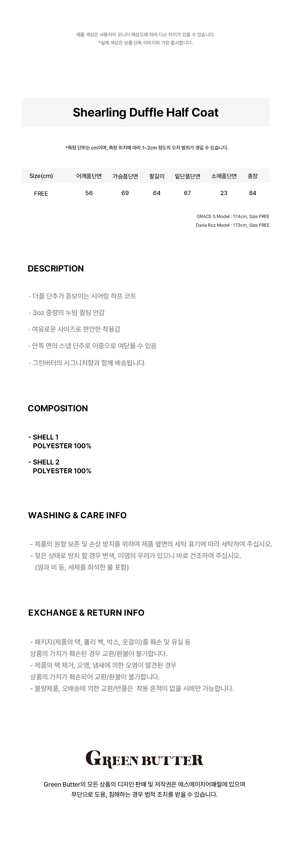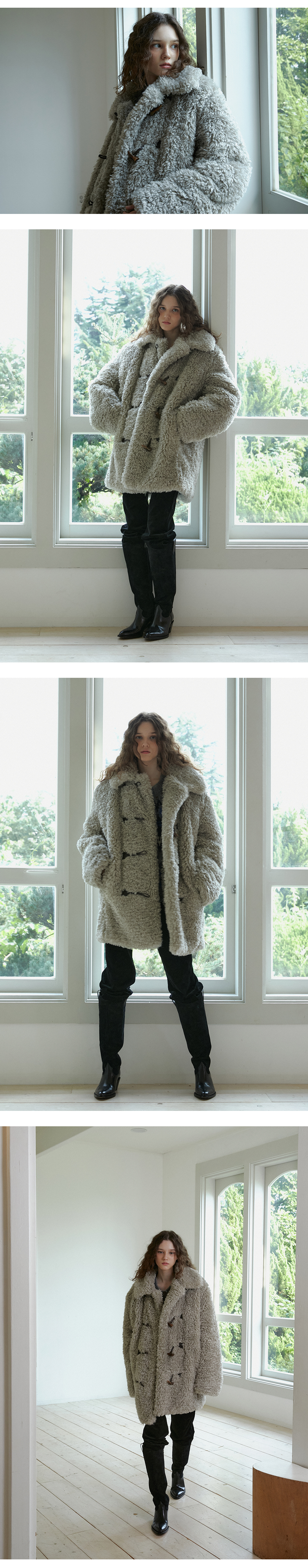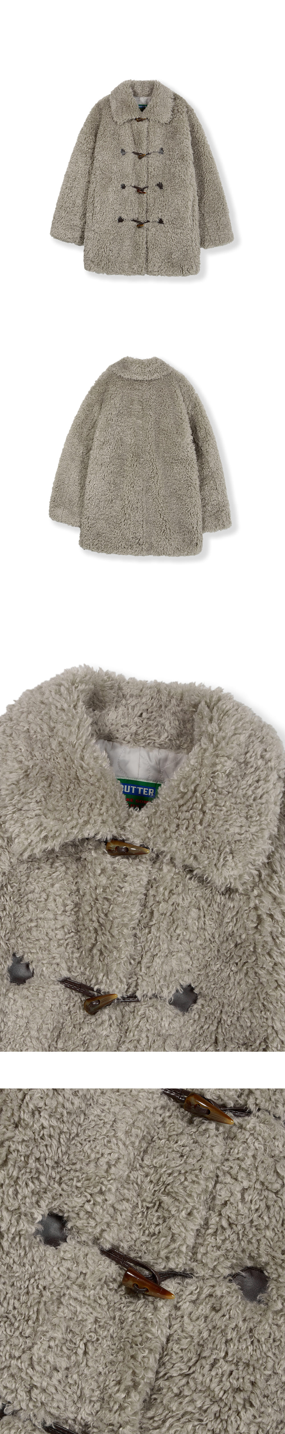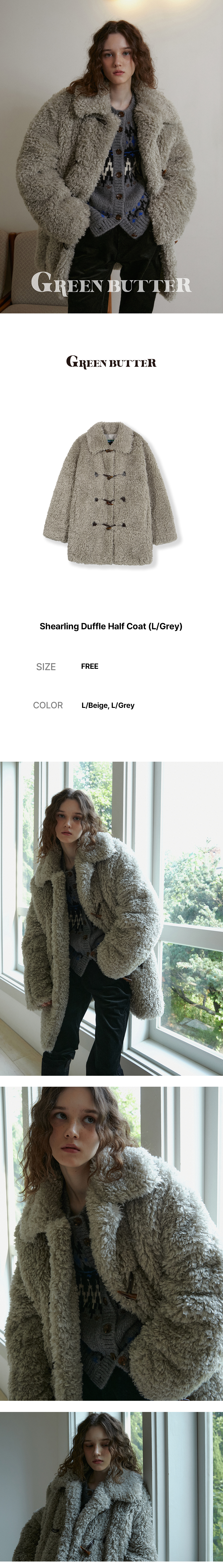 그린버터 시어링 더플 하프 코트 라이트 그레이