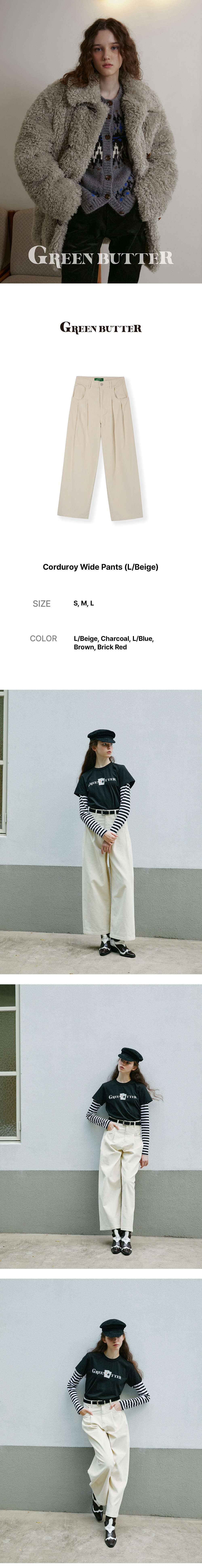 그린버터 코듀로이 와이드 팬츠 라이트 베이지