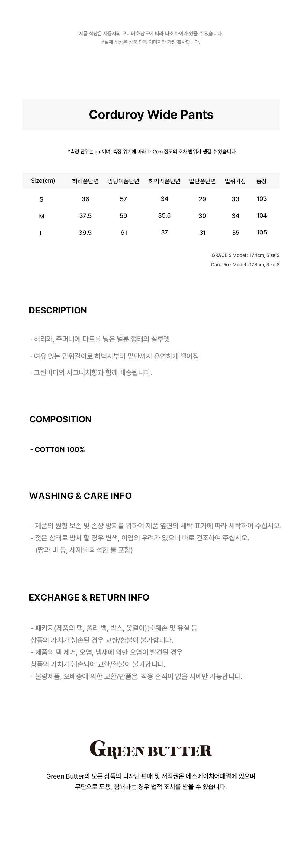 그린버터 코듀로이 와이드 팬츠 라이트 블루