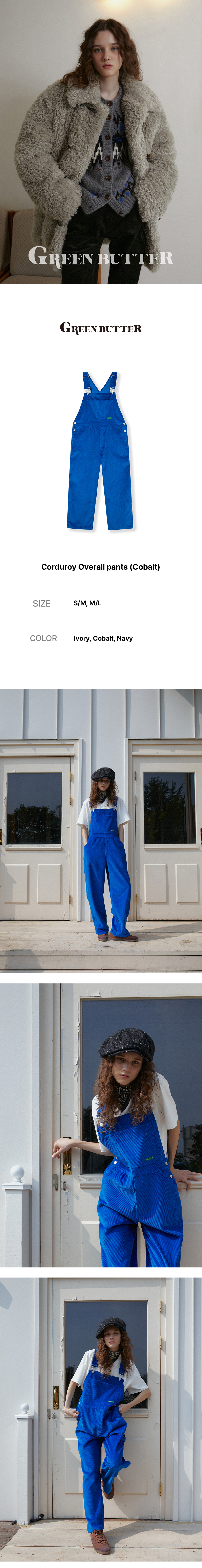 그린버터 코듀로이 오버롤 팬츠 코발트