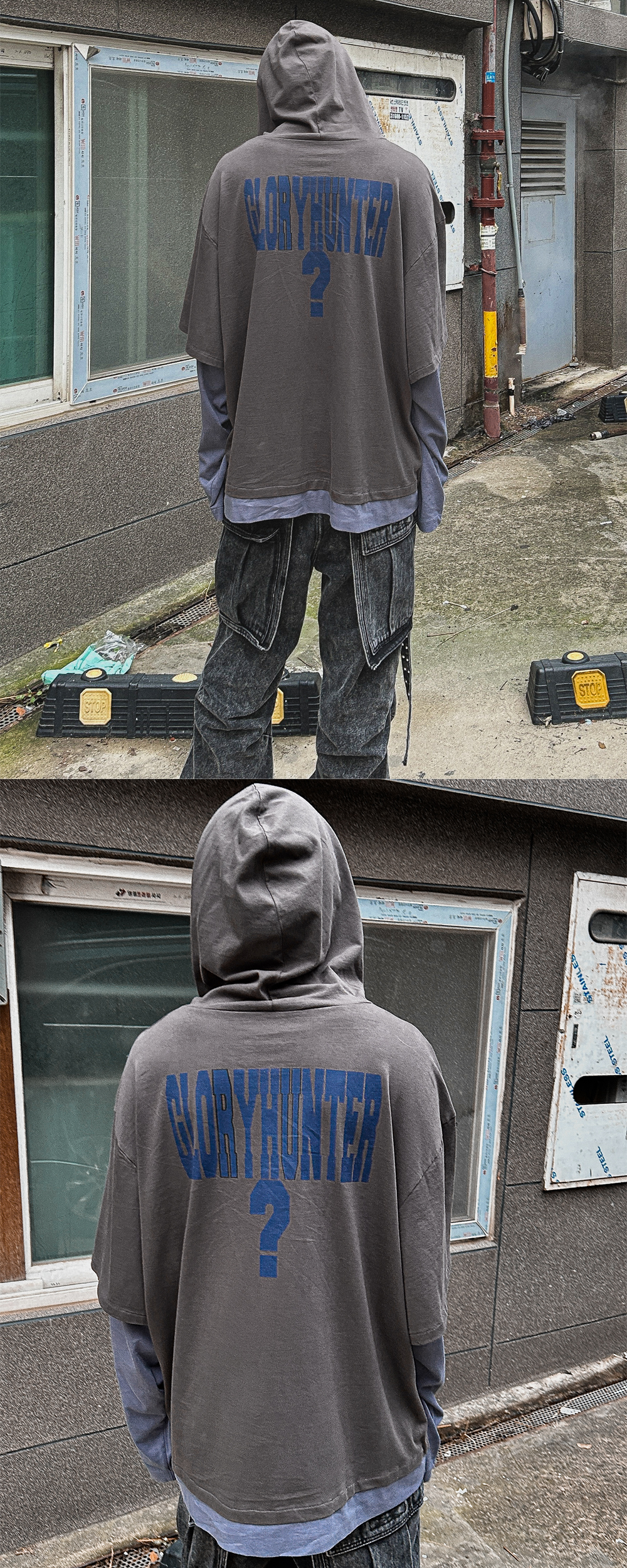 - 자수 및 레터링 프린트 - 스톤 워시 - 레이어드 형태의 가벼운 후드 티
