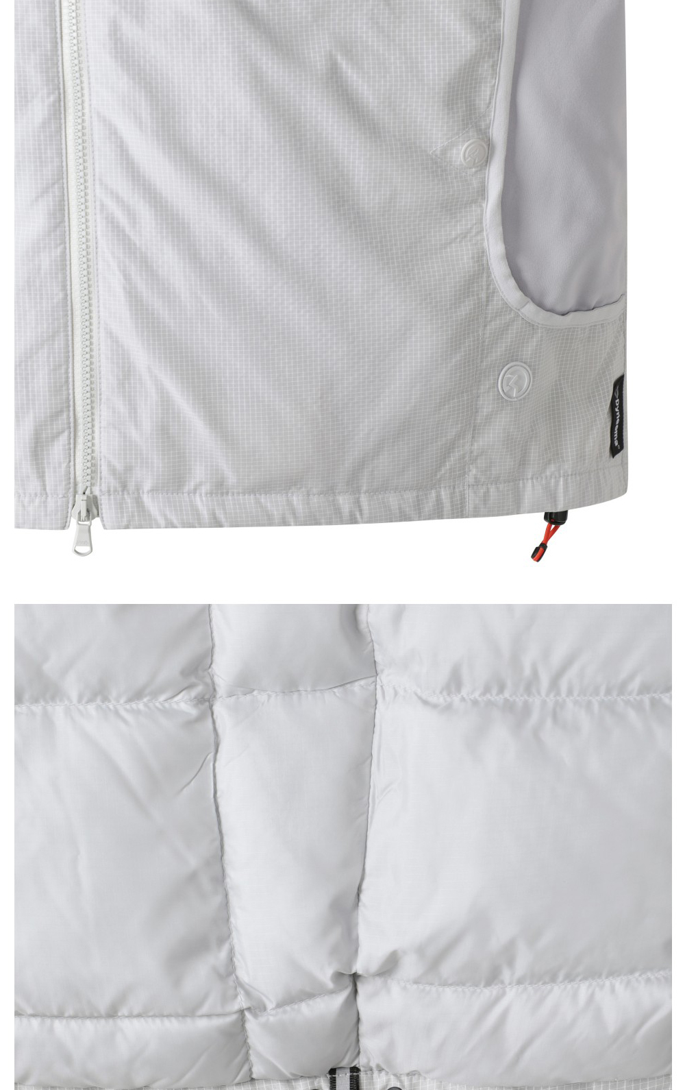 ●상품 설명 24FW 어센틱 라인의 VAIL 컨셉을 반영한 미드레이어 두께의 라이트웨이트 다운 점퍼입니다. 프리미엄 다이니마(Dyneema) 원단과 지그재그 봉제 기법, 3가지의 원단이 결합된 디자인으로 견고함과 세련미를 더했습니다. 숨겨진 기능성 포켓과 구스다운 90/10 충전재, 초경량 다운백을 사용해 가벼운 착용감과 보온성을 제공합니다. 세미루즈 핏으로 트렌디한 실루엣을 연출하며, 엉덩이를 살짝 덮는 기장으로 가을엔 아우터, 겨울엔 레이어드로 활용 가능합니다. ●소재 네덜란드의 화학 회사 DSM이 개발한 초고분자량 폴리에틸렌 원사 다이니마(Dyneema)와 나일론 혼방 소재입니다. 내마모성과 UV 저항성이 우수하며, 탄소 배출량이 일반 섬유보다 90% 낮아 친환경적입니다. 립스탑 조직으로 견고하면서도 가벼운 매트한 라이트 그레이 컬러가 특징입니다.