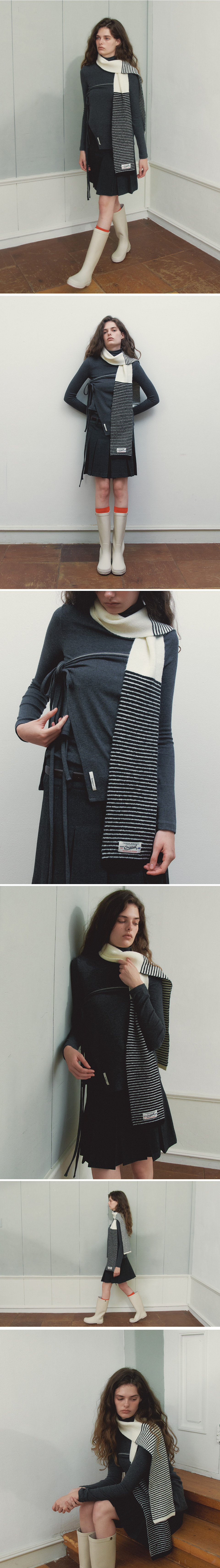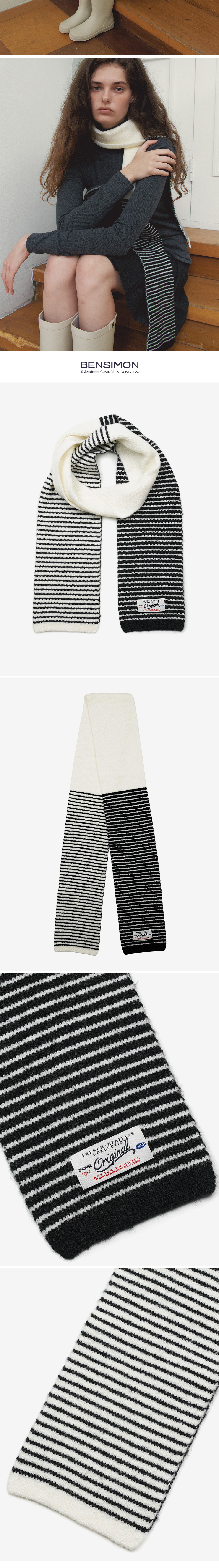 벤시몽 컬러 블럭 니트 머플러 화이트