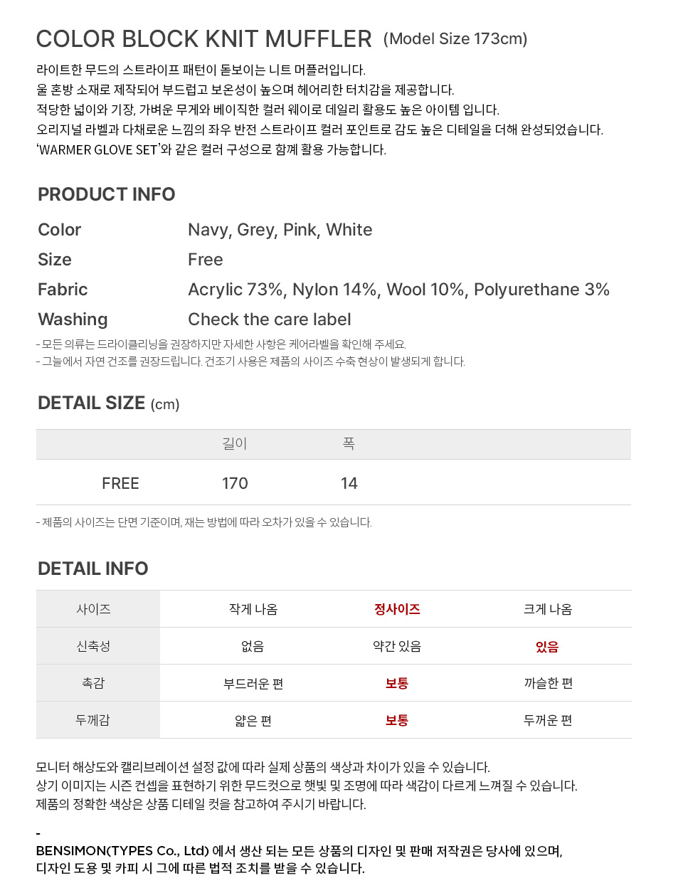 벤시몽 컬러 블럭 니트 머플러 핑크