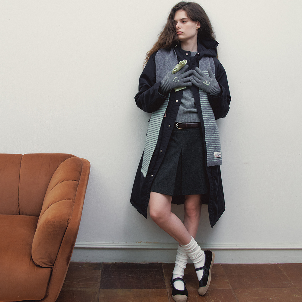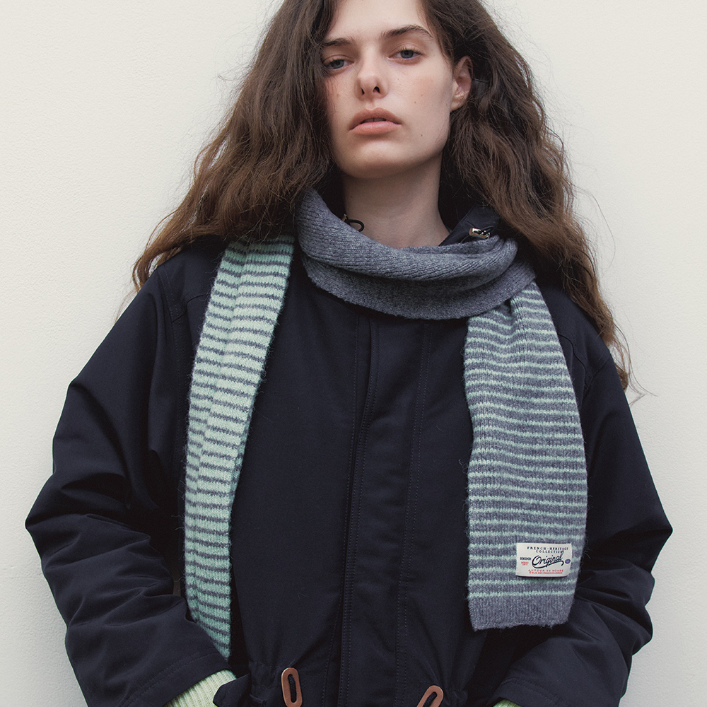 벤시몽 컬러 블럭 니트 머플러 그레이