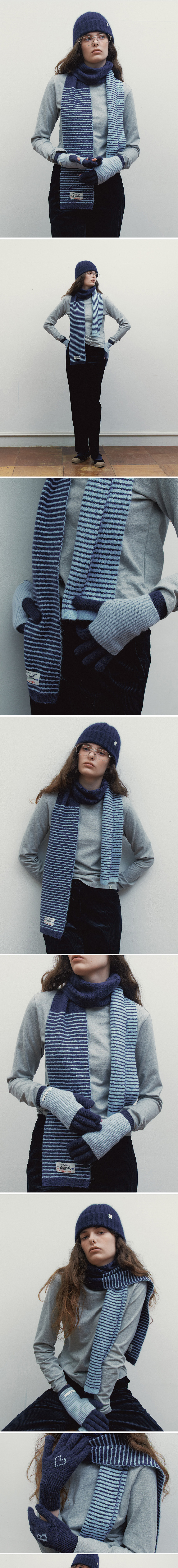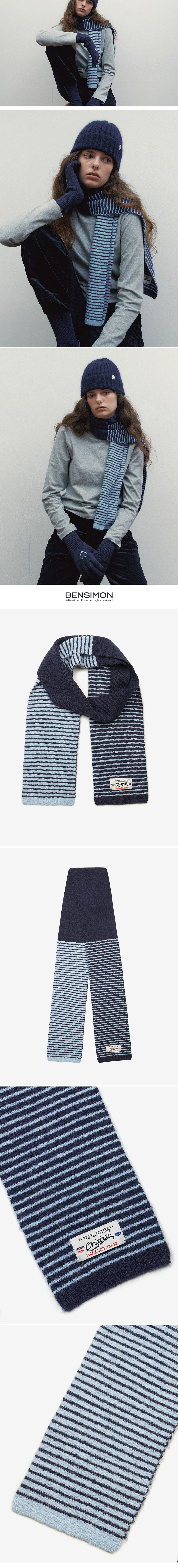 벤시몽 컬러 블럭 니트 머플러 네이비