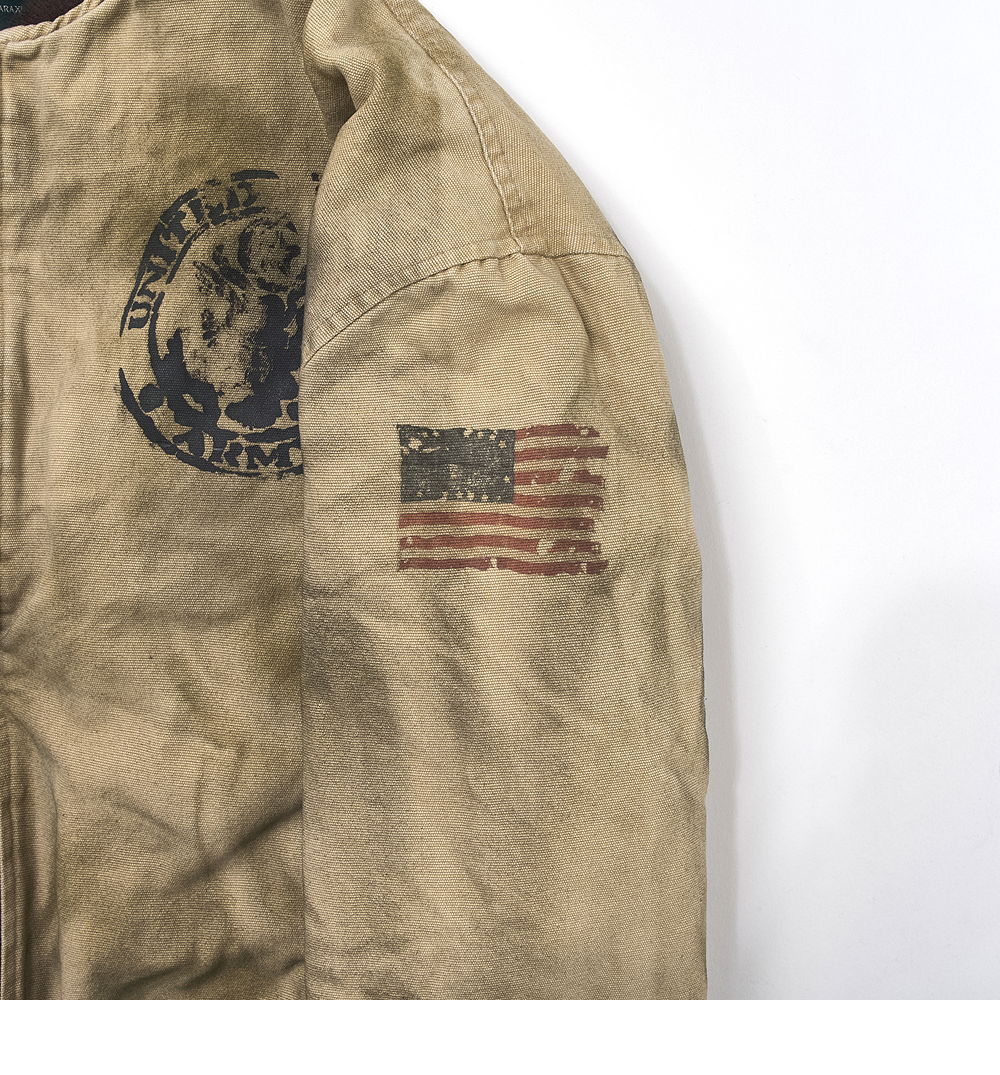 Undermycar Go After Topgun American Flag Washed Bomber Dirty Beige - 24FW