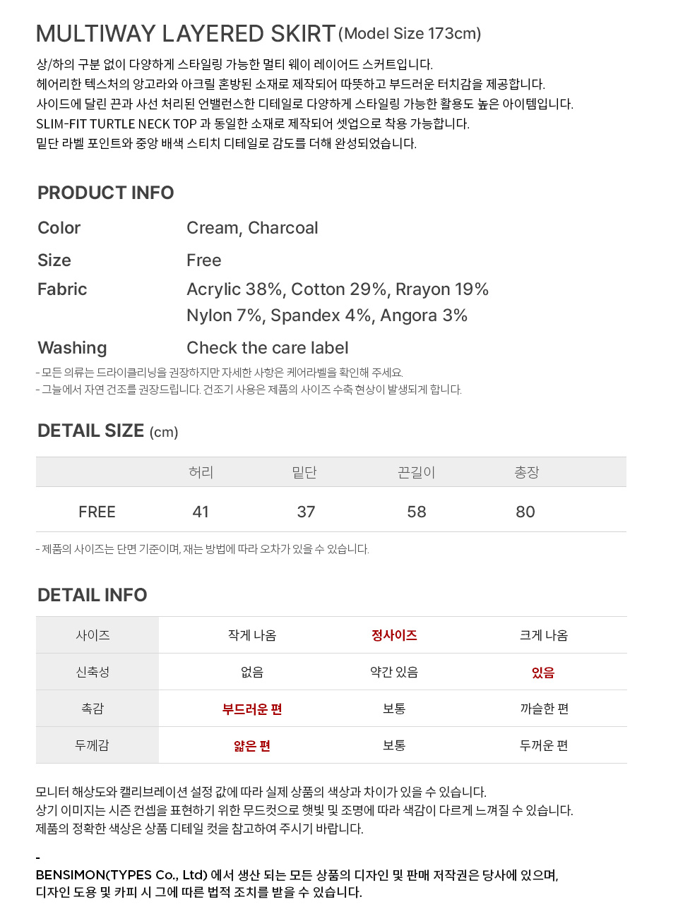 벤시몽 멀티웨이 레이어드 스커트 크림