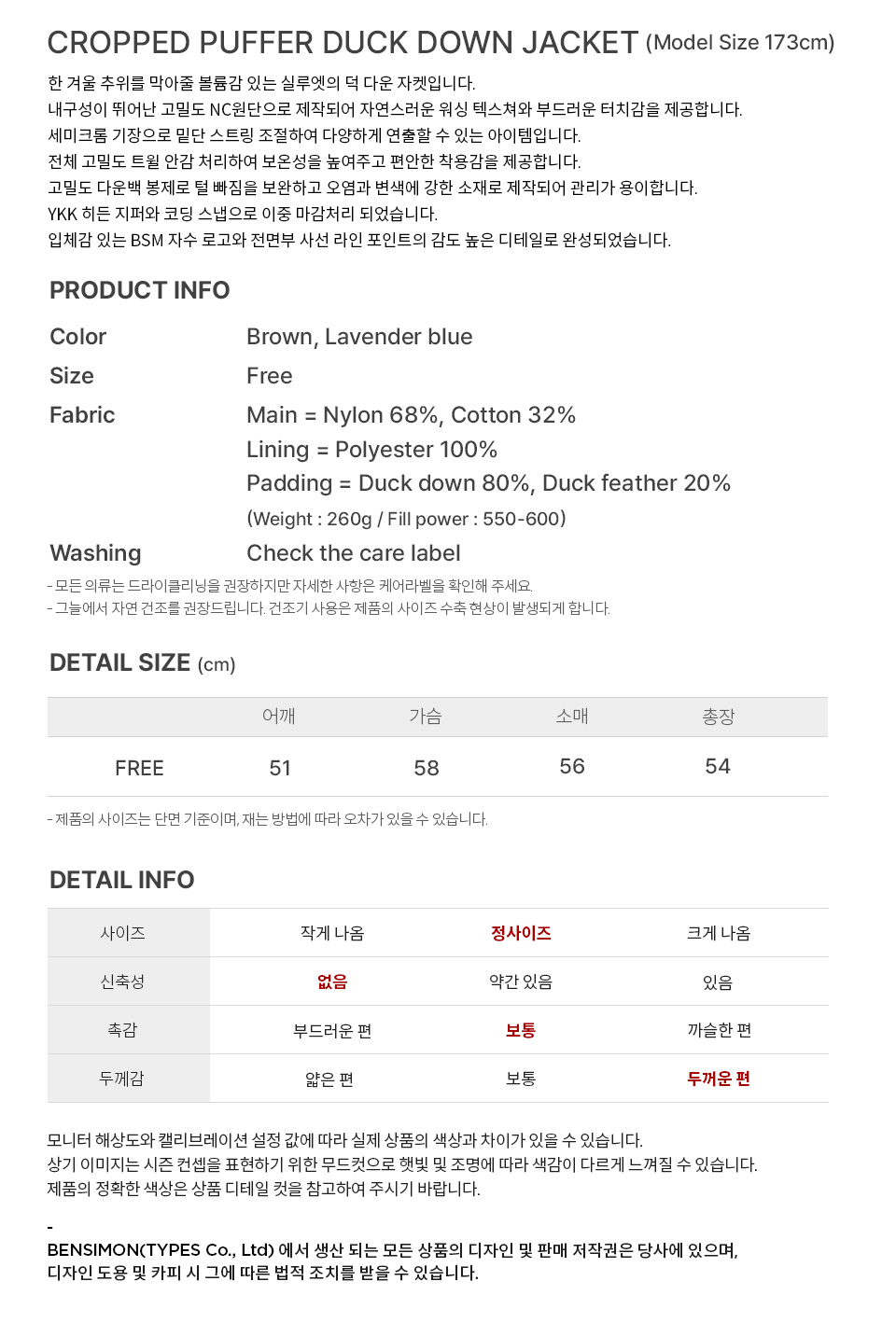 벤시몽 크롭 푸퍼 덕다운 자켓 브라운