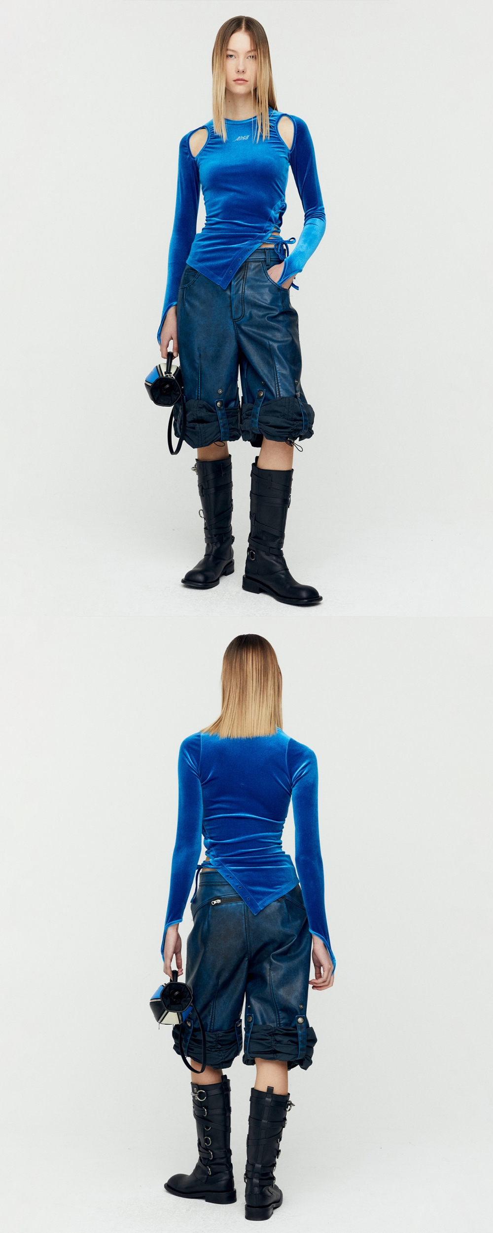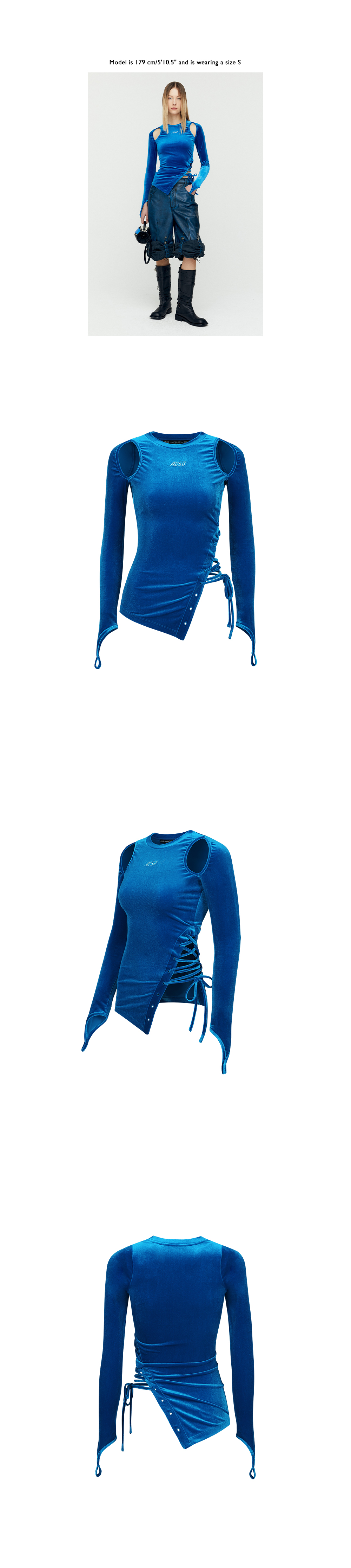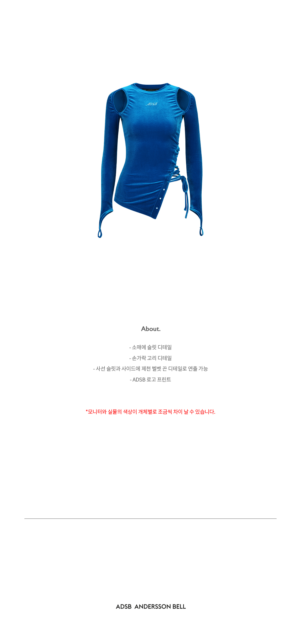 ADSB 앤더슨벨 우먼 벨벳 컷 아웃 탑 블루