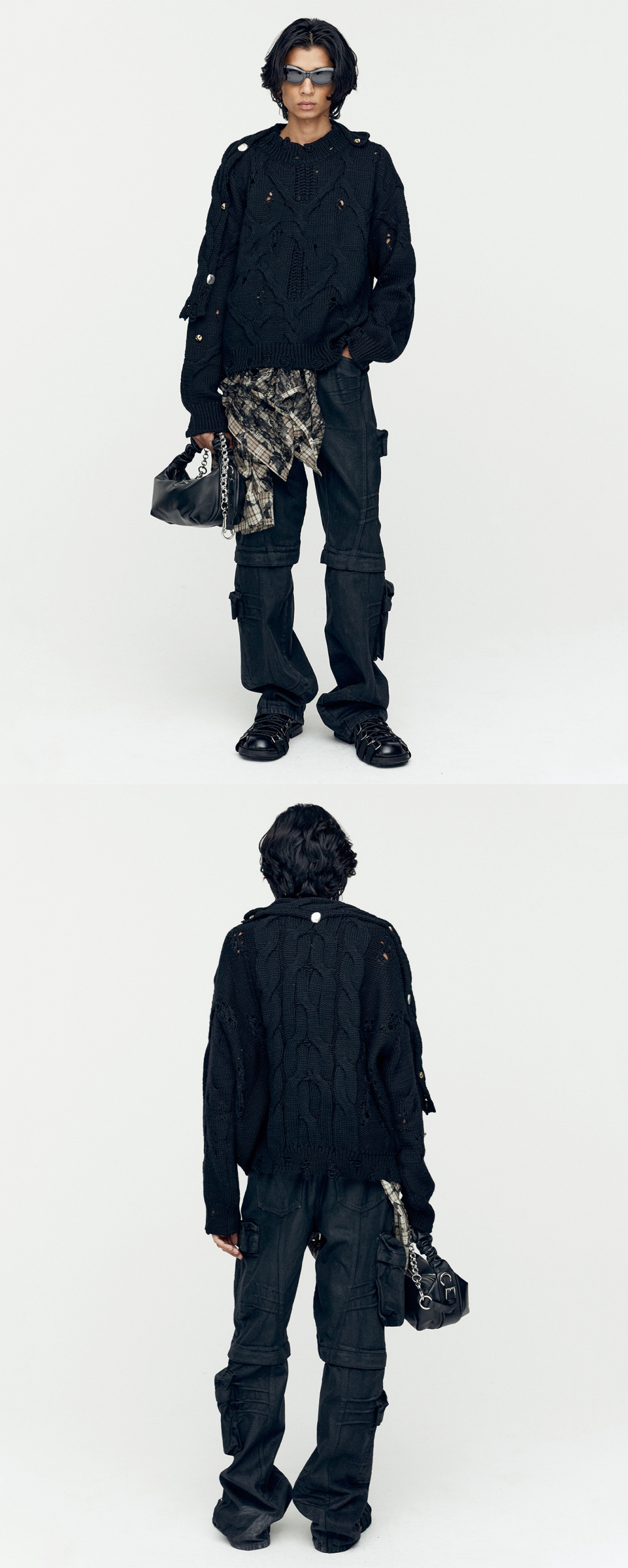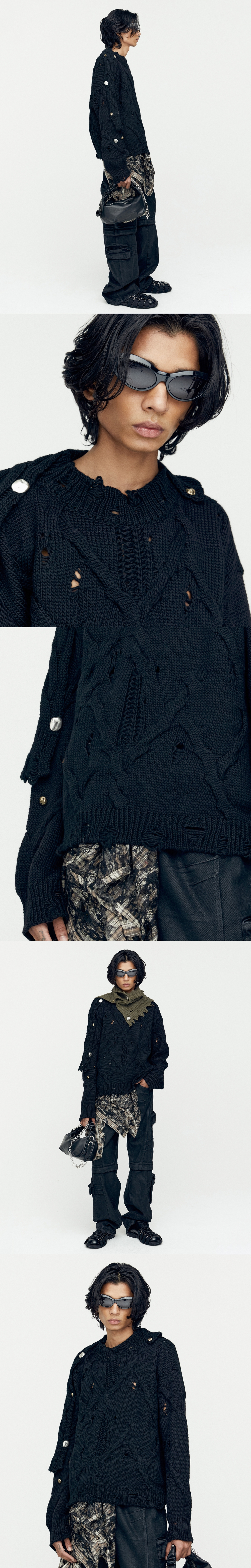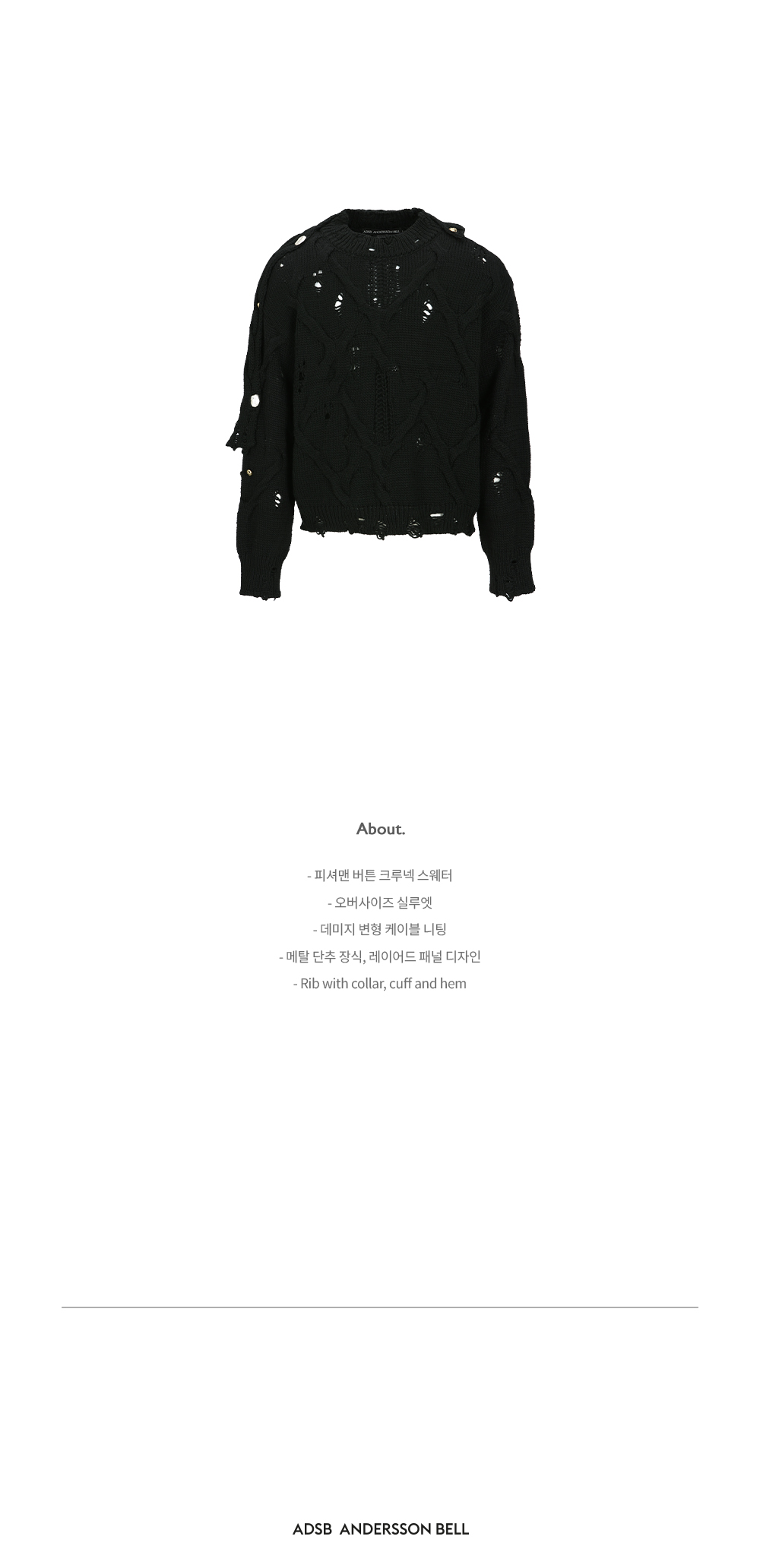 ADSB 앤더슨벨 피셔맨 버튼 크루넥 스웨터 블랙
