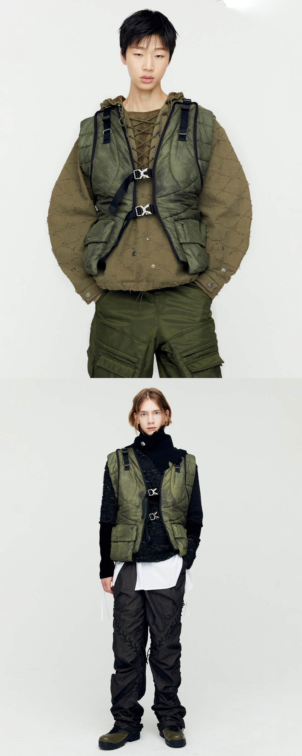 ADSB 앤더슨벨 마블 프린트 패디드 베스트 그린