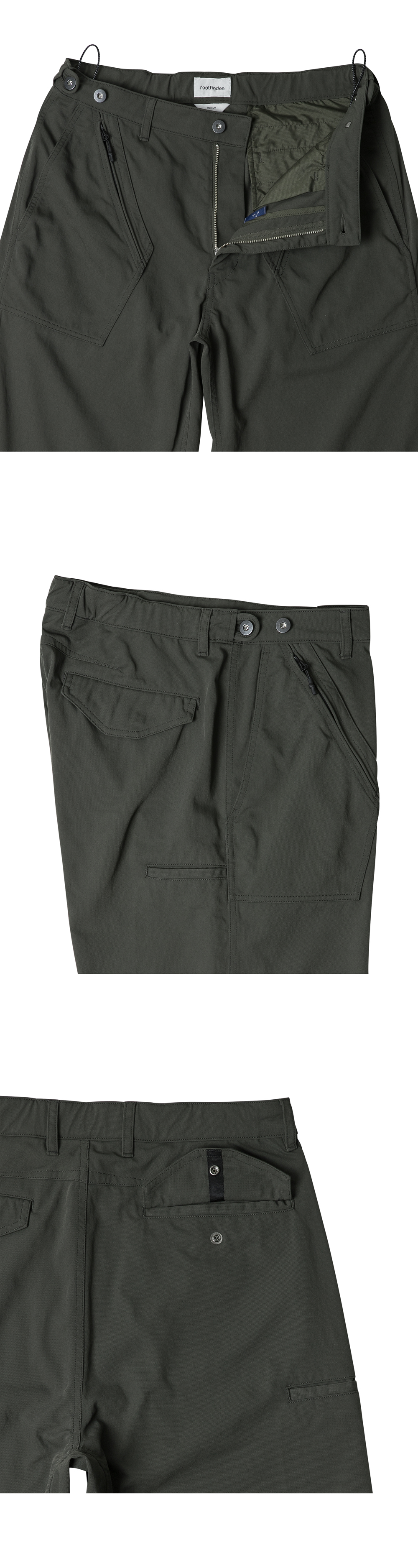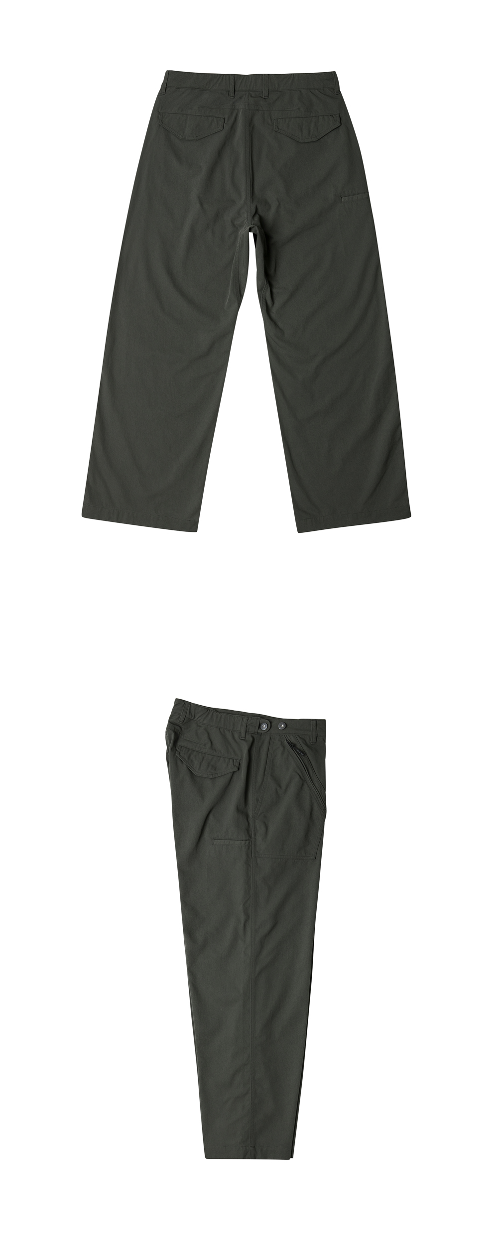USAF K-2B 플라잉 수트에서 영감을 받은 ‘파일럿 팬츠’ USAF K-2B 플라잉 수트의 실용적인 포켓 레이아웃을 담백하게 재해석한 제품입니다. 허벅지에서 발목까지 자연스럽게 일자로 떨어지는 레귤러 스트레이트 핏으로 걸을 때마다 흐르는 듯한 유연한 움직임과 함께 균형 잡힌 실루엣을 연출합니다. 앉고 서는 활동을 보다 자유롭게 하기 위해 거셋 디테일을 추가하여 기능성과 편안함을 더합니다. 허리에는 사이즈 조절이 가능한 스냅 어드저스트를 적용해 개별적인 핏 조정이 가능하며, 전면 지퍼 포켓과 사이드 포켓, 그리고 오른쪽 허벅지의 사이드 포켓으로 실용성을 극대화했습니다. 고밀도 나일론 100% 소재를 사용해 견고하면서도 가볍고, 가먼트 워싱 가공을 통해 자연스러운 주름과 퍼커링이 캐주얼한 무드를 더해줍니다