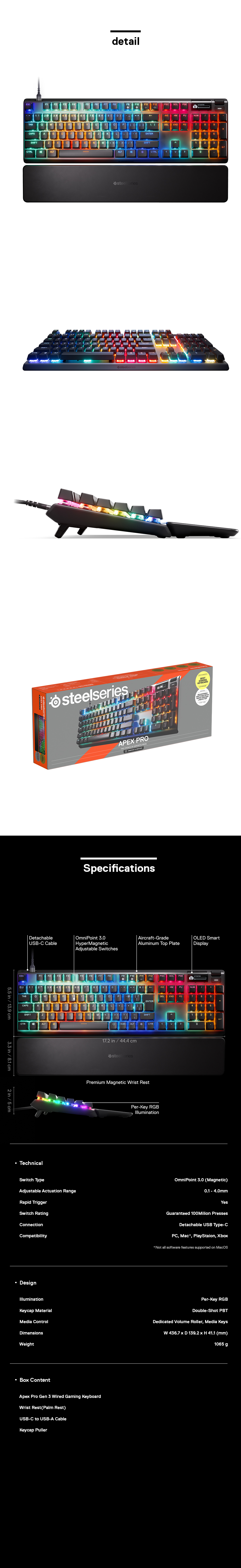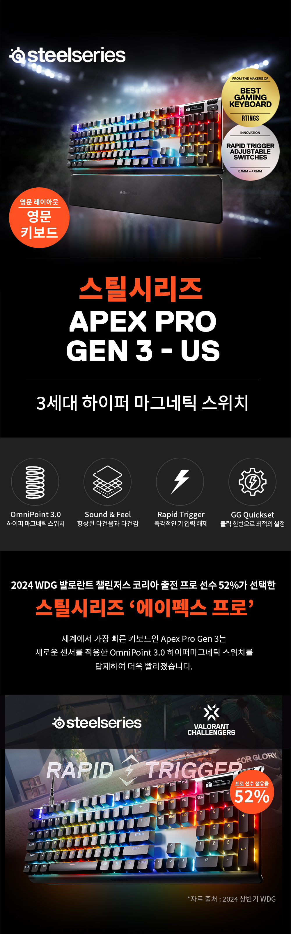 스틸시리즈 Apex Pro Gen 3 US 자석축 기계식 게이밍 키보드
