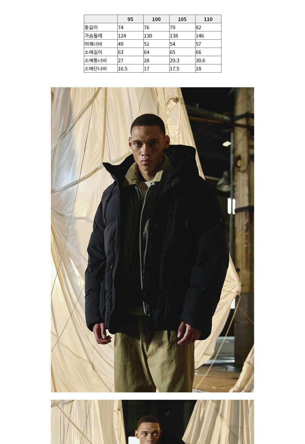 ●상품 설명 DOWN JUMPER는 N3B 미공군 군복을 모티브로 하여 현대적인 활용도를 높여 제작된 점퍼입니다. 유사톤 배색으로 심플하면서도 포인트 있는 디자인을 완성했으며, 경량 나일론 원단과 구스다운 90/10 충전재, 초경량 다운백을 사용해 가벼우면서도 풍성한 실루엣을 자랑합니다. 사각 칸다운 퀼팅과 터널 퀼팅을 믹스하여 보온성과 스타일을 모두 살렸으며, 넥 라인과 소맷단의 이중 디테일로 바람이 차단되도록 설계되었습니다. 허리 드로우 스트링을 이용해 실루엣을 조절할 수 있어 다양한 스타일링이 가능합니다. ●소재 광택감이 적은 40데니어 풀덜 원사를 사용해 내추럴한 외관과 방풍 기능을 살린 고품질 나일론 원단입니다. 이중 시레와 코팅 처리로 바람을 막아주며, 부드럽고 매트한 텍스처가 특징입니다. RDS 인증을 받은 윤리적 구스다운 90/10 충전재를 사용해 보온성과 함께 환경을 고려한 제품입니다.