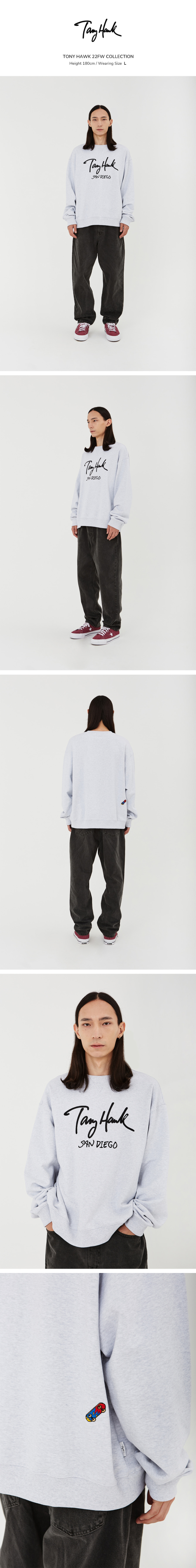 토니호크 토니 로고 맨투맨 라이트 그레이