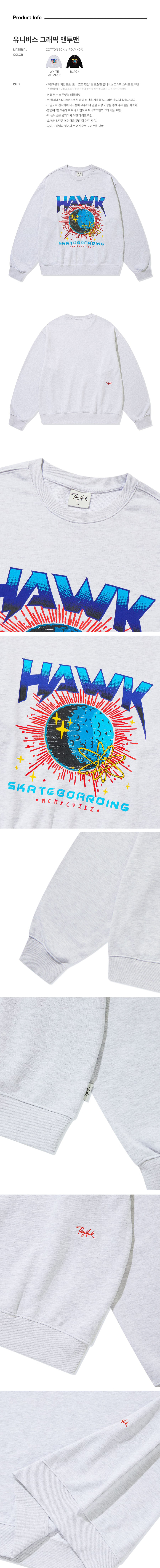 토니호크 유니버스 그래픽 맨투맨 화이트 멜란지