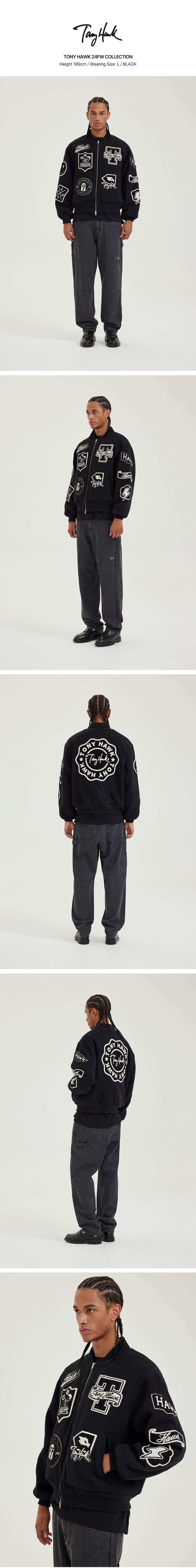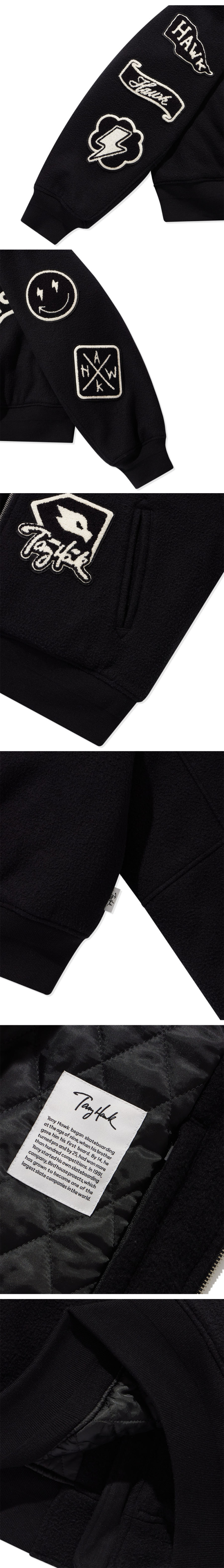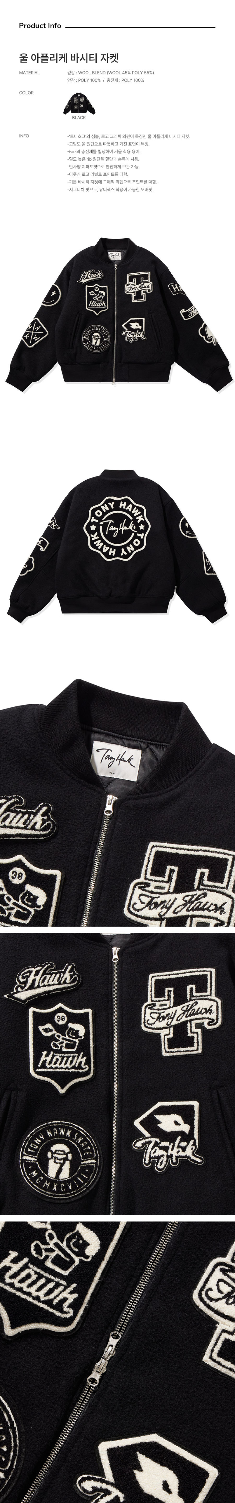 토니호크 울 아플리케 바시티 자켓 블랙