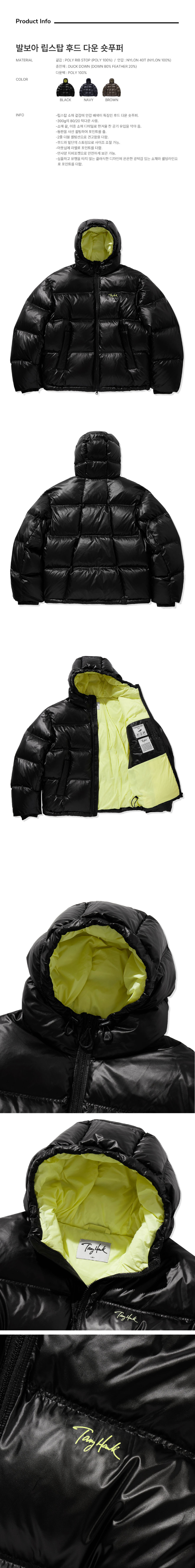 토니호크 발보아 립스탑 후드 다운 숏푸퍼 블랙