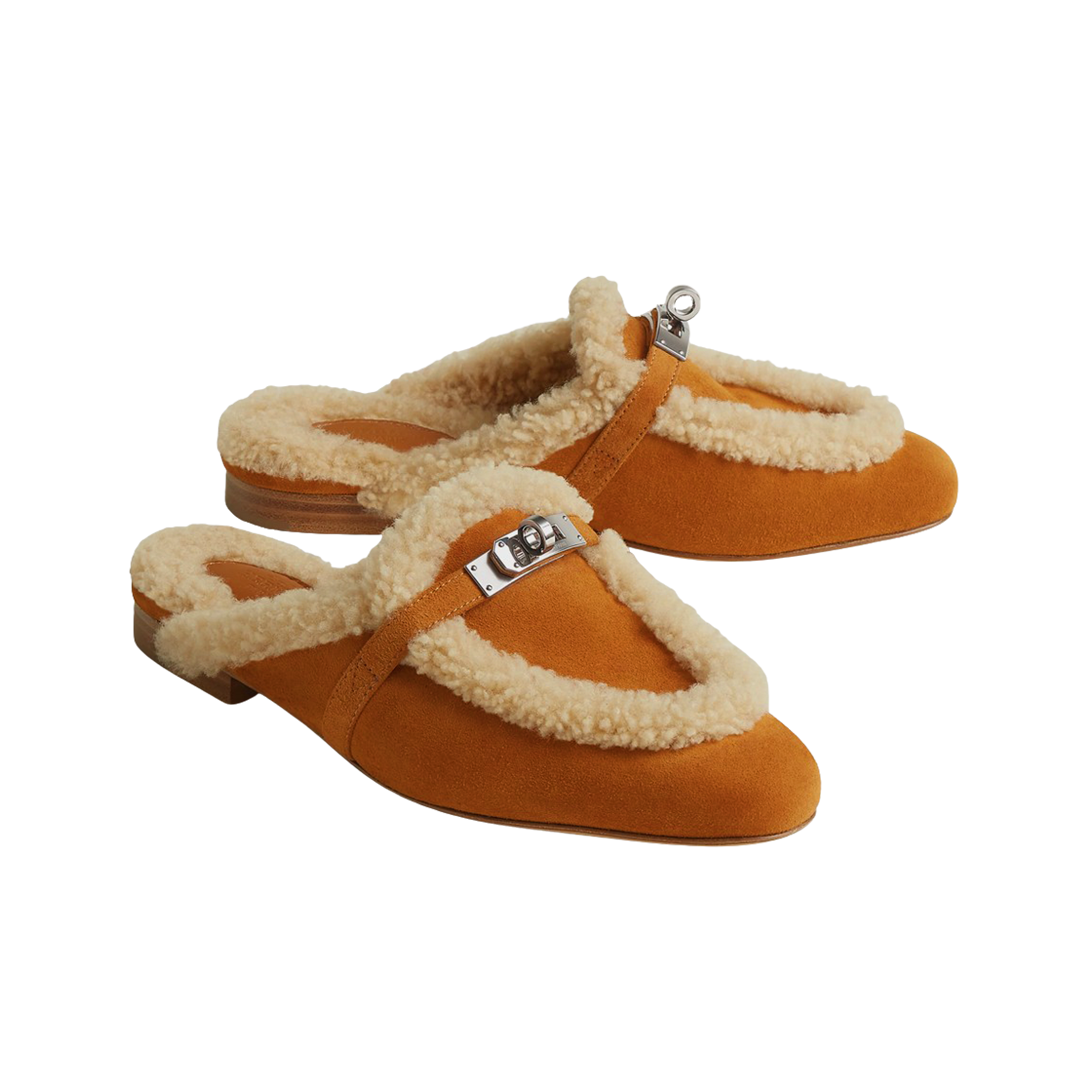 (W) 에르메스 오즈 뮬 스웨이드 고트스킨 & 팔라듐 하드웨어 나뛰렐 에크류