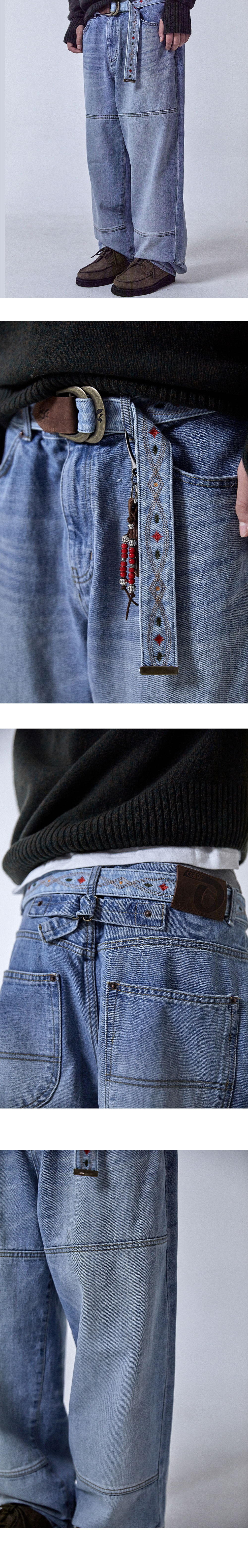 오가프 워시드 와이드 데님 팬츠 라이트블루