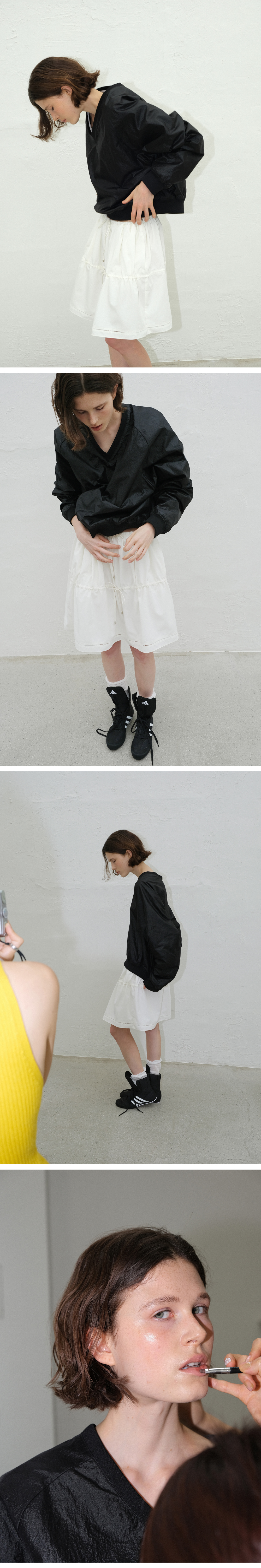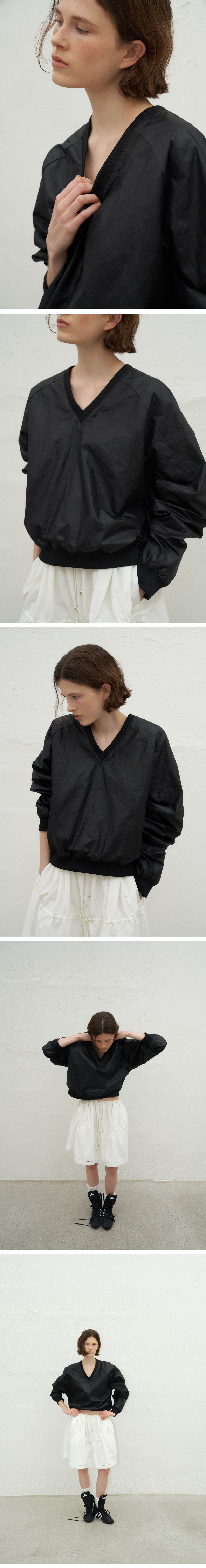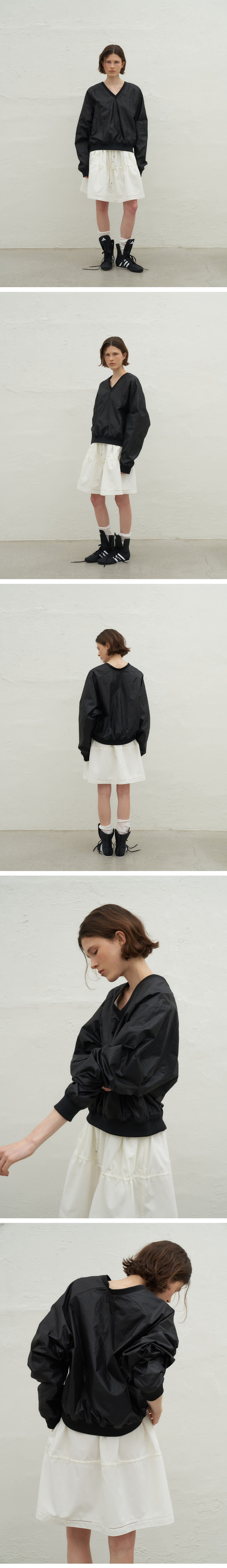 오버한 핏의 나일론 스웻셔츠 입니다. 매트한 광택이 도는 나일론 소재를 사용해 트렌디한 무드가 느껴집니다. 촘촘한 스티치로 샤프한 네크라인을 살려 실루엣을 깔끔하게 잡아주고 넥라인을 따라 톤을 맞춘 FOETO 심볼 자수 디테일을 더해 아이덴티티를 담아냈습니다. 안감은 코튼소재를 사용해 차가운 소재감에 거부감이 없도록 섬세한 디테일을 더해주었습니다. 여유롭고 릴랙스한 핏 덕분에 조금 더 편안하게 다양한 하의와 매치해 어텀룩을 완성하실 수 있습니다.