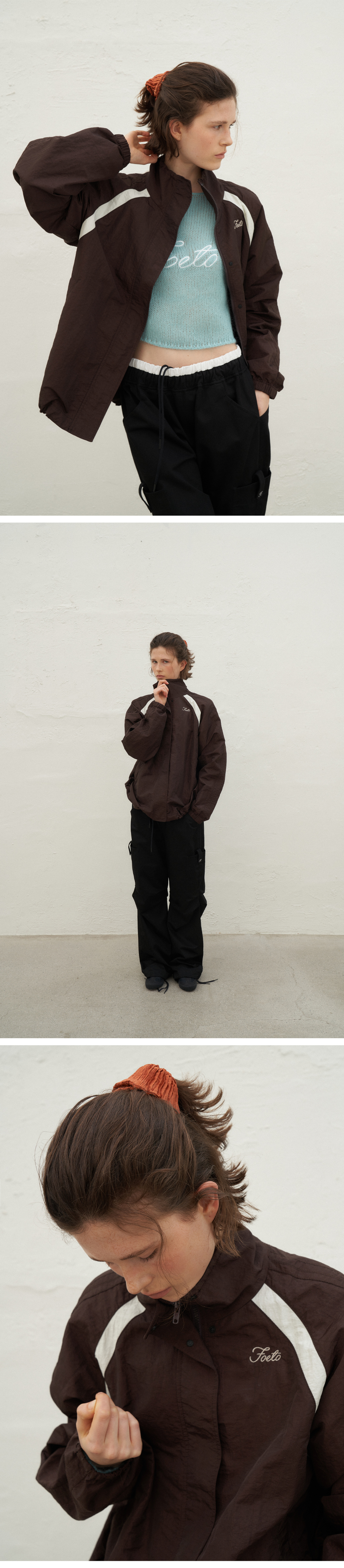 바스락한 소재의 가볍고 릴랙스한 무드의 윈드점퍼 입니다. 비교적 가볍고 매트한 재질의 나일론 소재로 제작되었습니다. 래글런 라인에 더해진 배색 디테일과 라인을 따라 Foeto 로고 자수 디테일을 더했습니다. 백라인의 같은 재원단 라벨판과 빈티지한 실버 로고참 포인트가 되어줍니다. 톤을 맞추어 달아준 스냅버튼과 지퍼로 이중 잠굼을 하실 수 있습니다. 하이넥 디자인으로 바람을 잘 막아주며, 넥 뒤로 잡아준 스토퍼와 포인트 스트링이 유틸리티한 매력을 더해줍니다. 소매의 재원단으로 잡아준 2줄 테이핑 디테일과, 소매끝의 볼드한 밴드 디테일로 실루엣을 완성했습니다. 밑단 스토퍼로 원하는 실루엣 조절이 가능해 다양한 하의라인과 매치하시기 좋습니다.