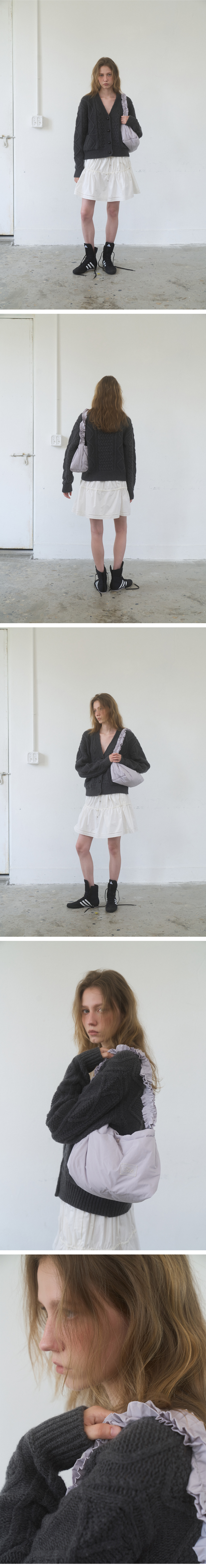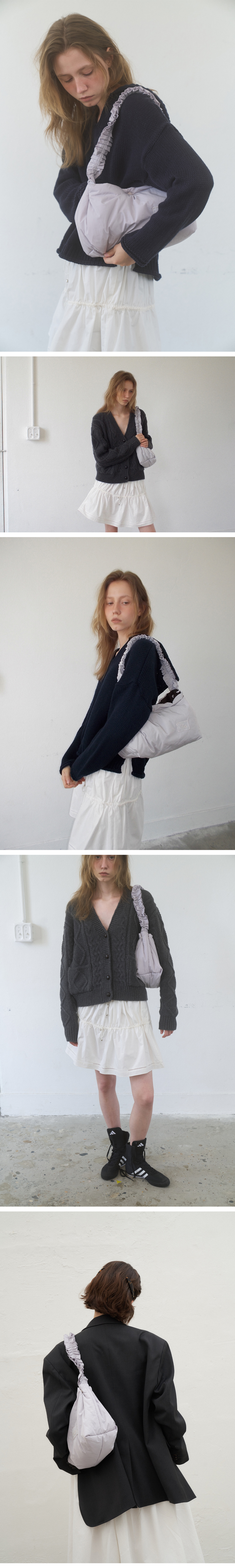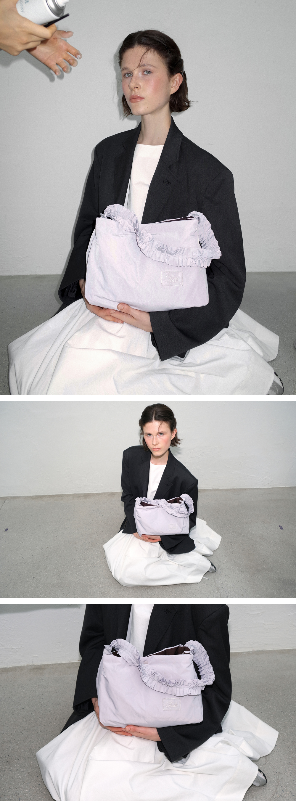 적당한 사이즈감의 수납력이 우수한 Puffer bag입니다. 매트하지만 적당히 광택감이 흐르는 나일론 소재를 사용하여, 4온스 하스솜을 합포해 제작되었습니다. 편안한 곡선라인과 Puffer bag 특유의 릴랙스함과 귀여움 그리고 편안함이 매력적인 가방입니다. 안감은 트윌감이 느껴지는 소재를 배색으로 사용해 포인트를 주었고, 사이드 밑에 오간자 라벨을 사용해 완성했습니다. 숄더/토트 모두 가능한 사이즈의 끈에 2중 셔링 디테일을 더해 러블리함과 빈티지함을 더해주었습니다. 작은 내부 포켓이 있어 카드 등의 간단한 수납이 가능하며 가벼운 무게감으로 데일리백으로 활용하기 좋습니다.