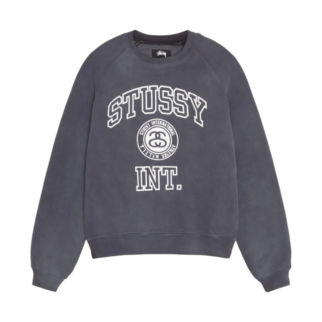 Stussy Overlock Varsity Raglan Crew Washed Black