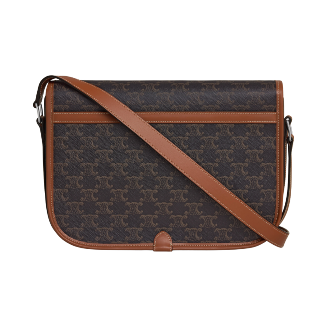 Celine Messenger Folco in Triomphe Canvas with Celine Print Tan