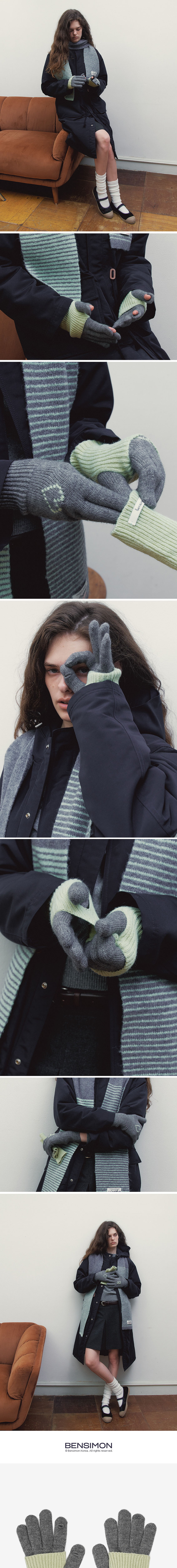 벤시몽 워머 글러브 세트 그레이/애플민트