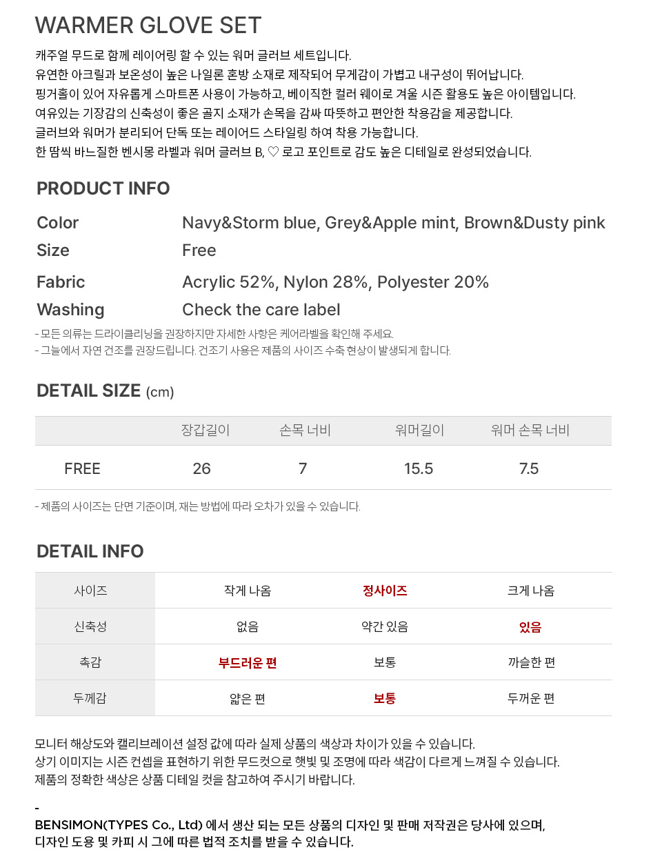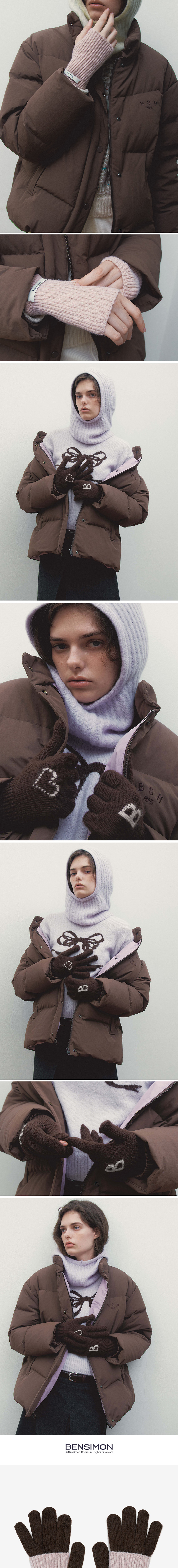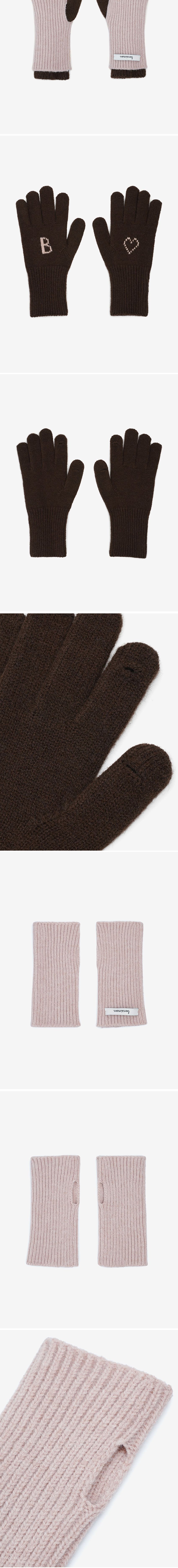 벤시몽 워머 글러브 세트 브라운/더스티핑크