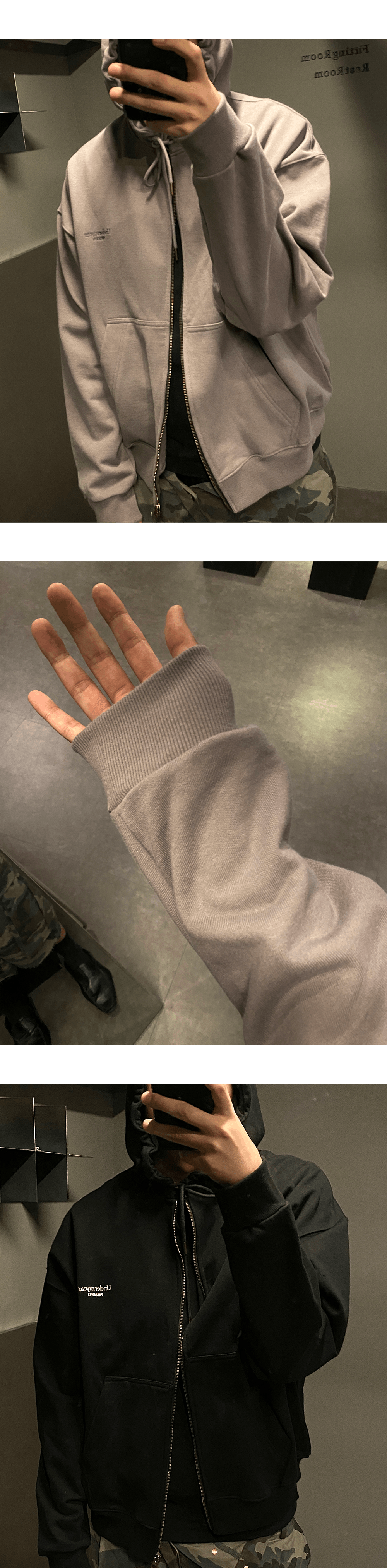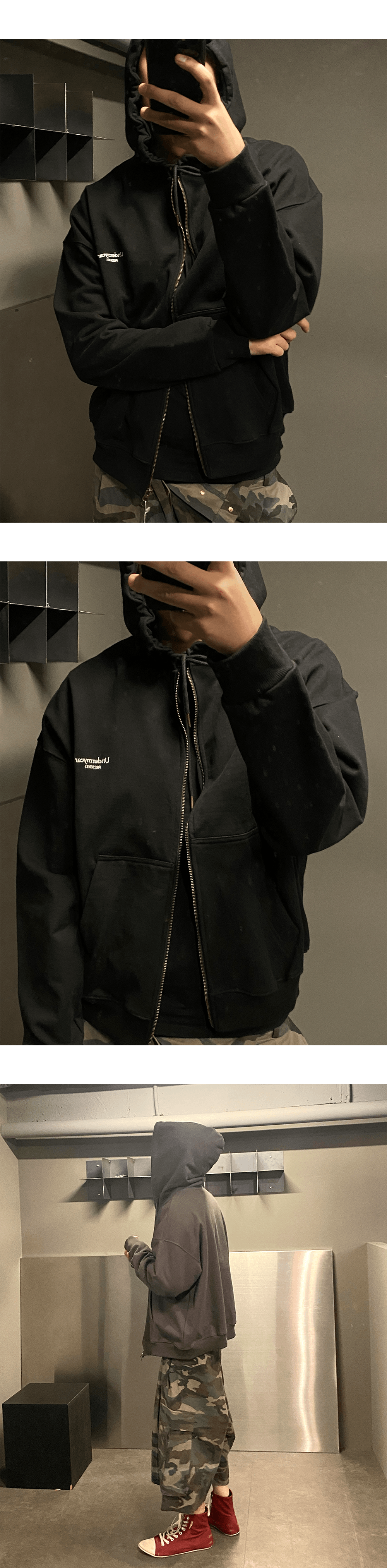 Undermycar Mu.56 Anti Fxxking Logo Play Basic Hood ZipUp Charcoal