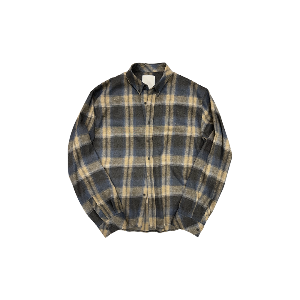 언더마이카 무.73 안티 Fxxking 로고 플레이 베이직 롱슬리브 플란넬 셔츠 스카이 베이지