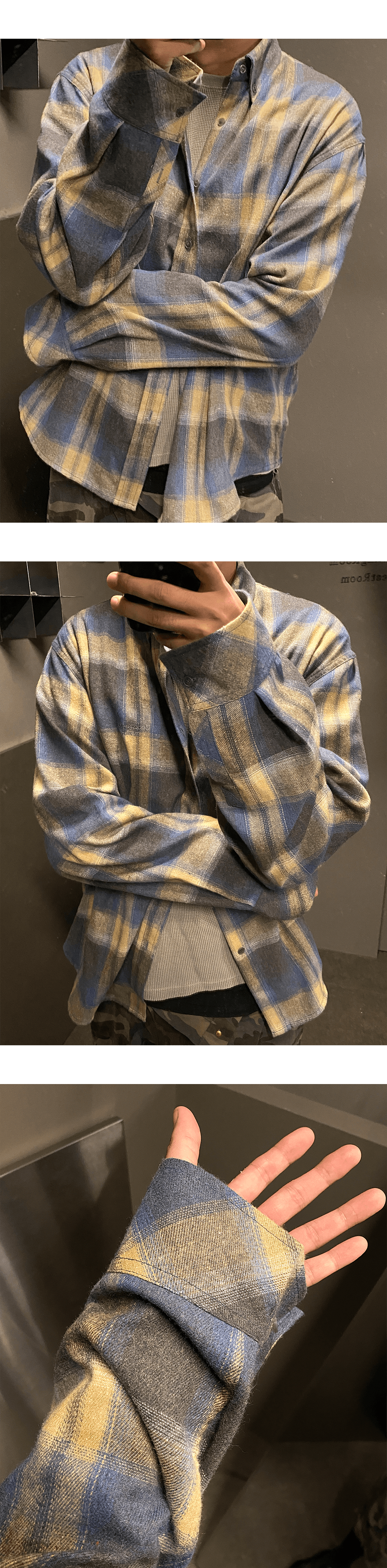 Undermycar Mu.73 Anti Fxxking Logo Play Basic Long Sleeve Flannel Shirts Sky Beige