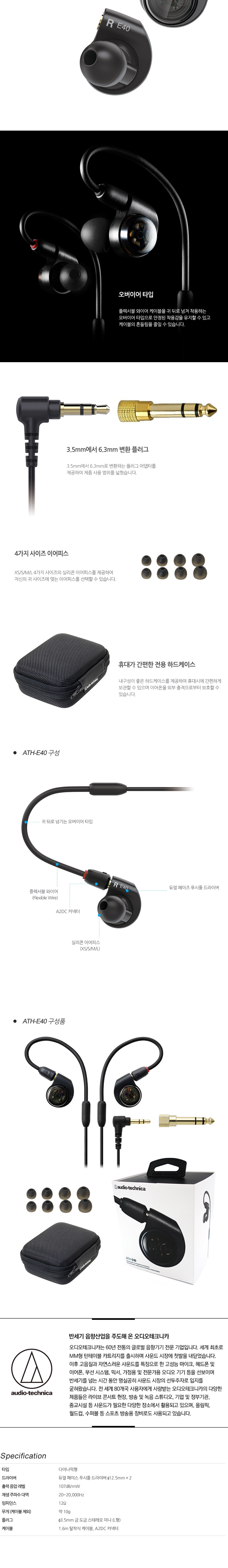 오디오테크니카 ATH-E40 듀얼 페이즈 푸시풀 드라이버 모니터링 이어폰