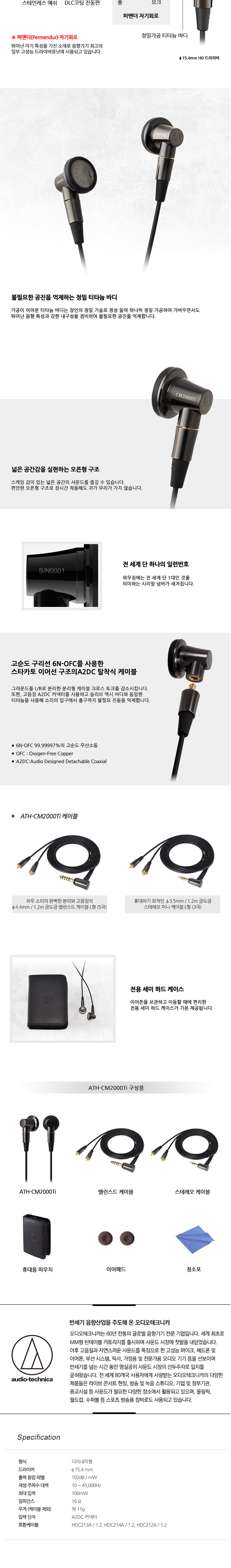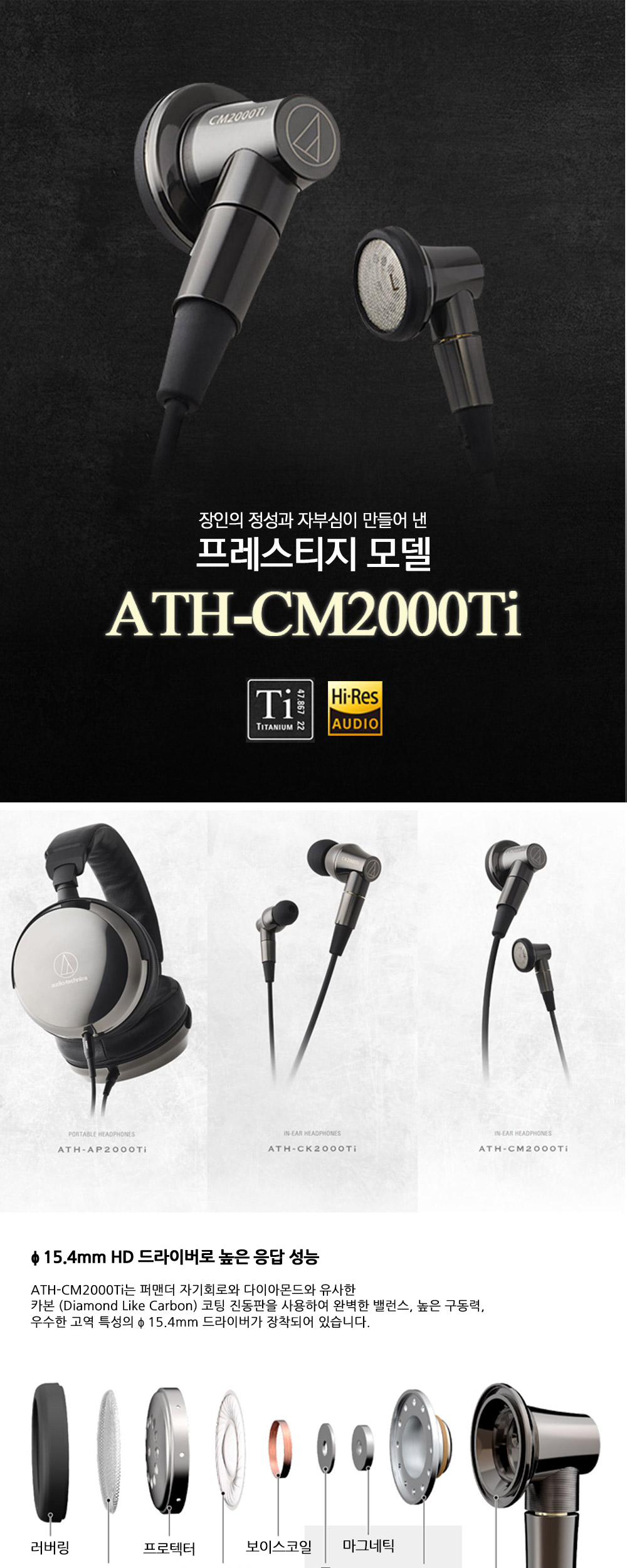 오디오테크니카 ATH-CM2000Ti 하이레졸루션 티타늄 오픈형 이어폰 프레스티지 모델