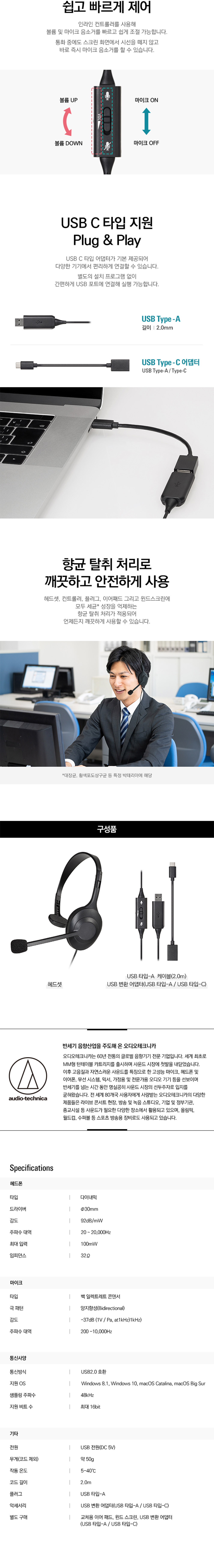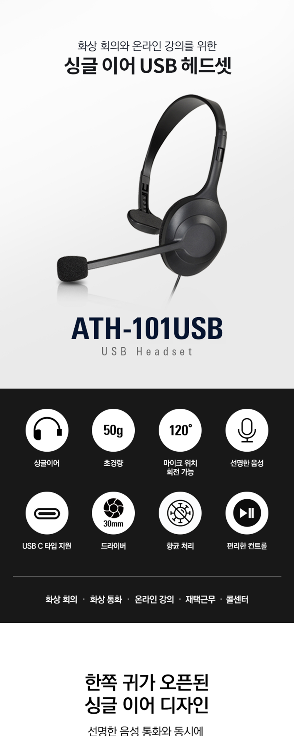 오디오테크니카 ATH-101USB 초경량 싱글이어 USB 헤드셋