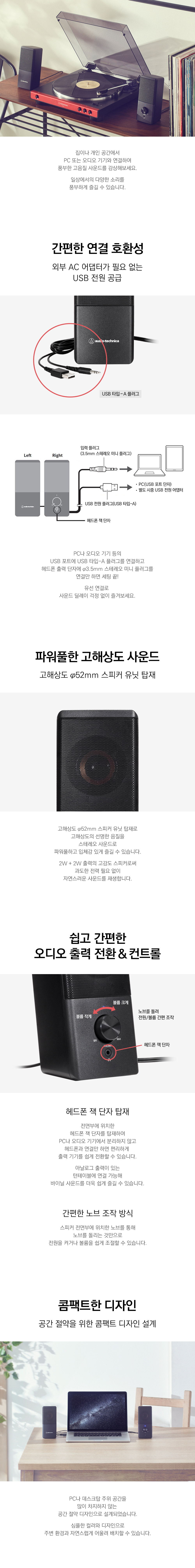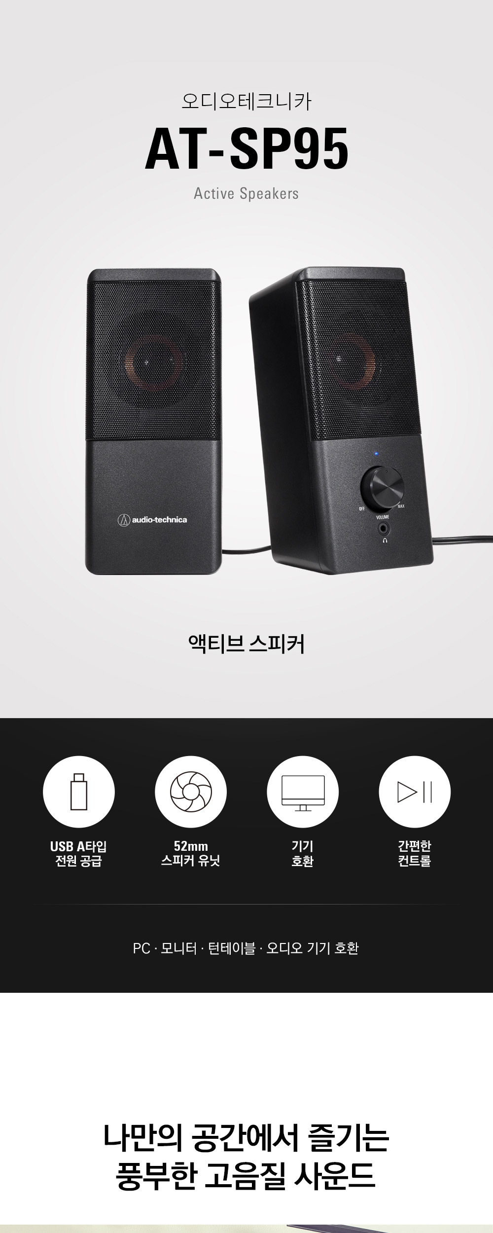 오디오테크니카 AT-SP95 고해상도 액티브 USB 타입 턴테이블 스피커