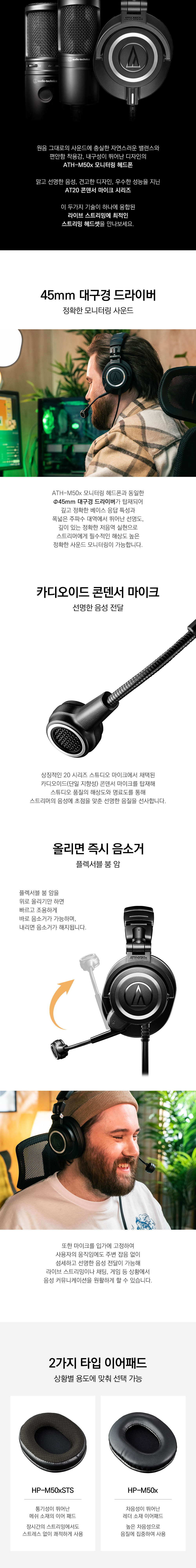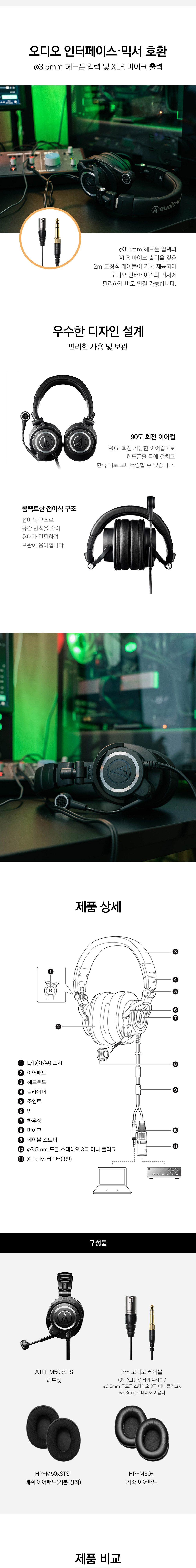 오디오테크니카 ATH-M50xSTS Stream Set 스트리밍 헤드셋 XLR 타입