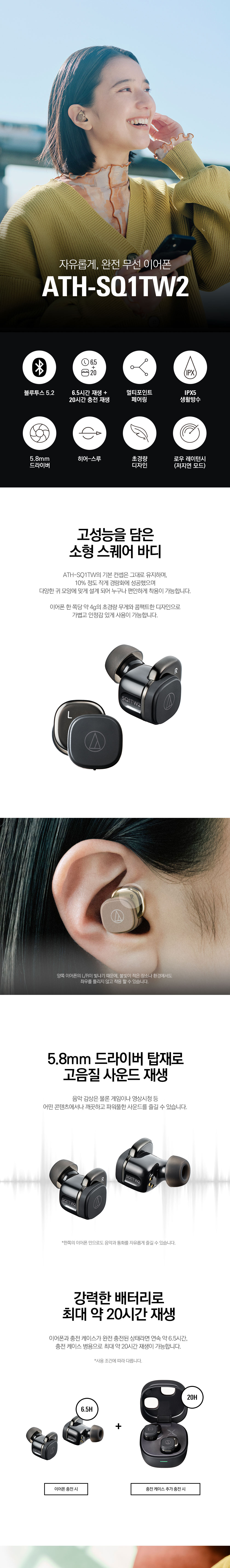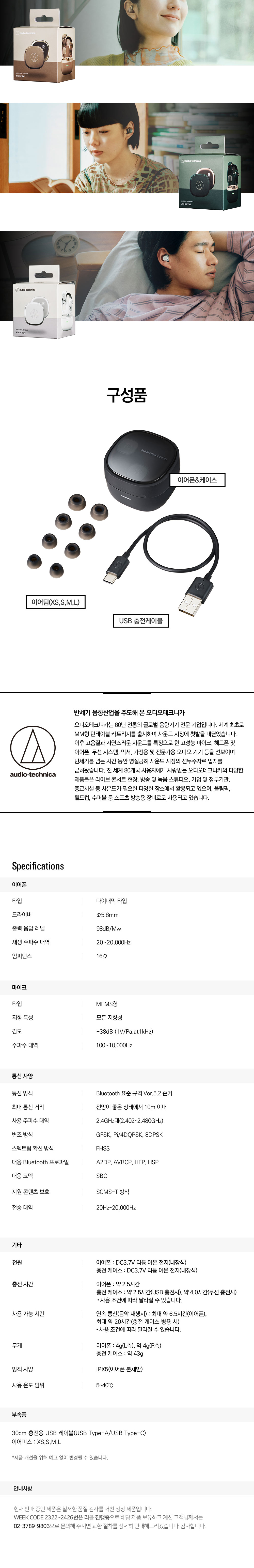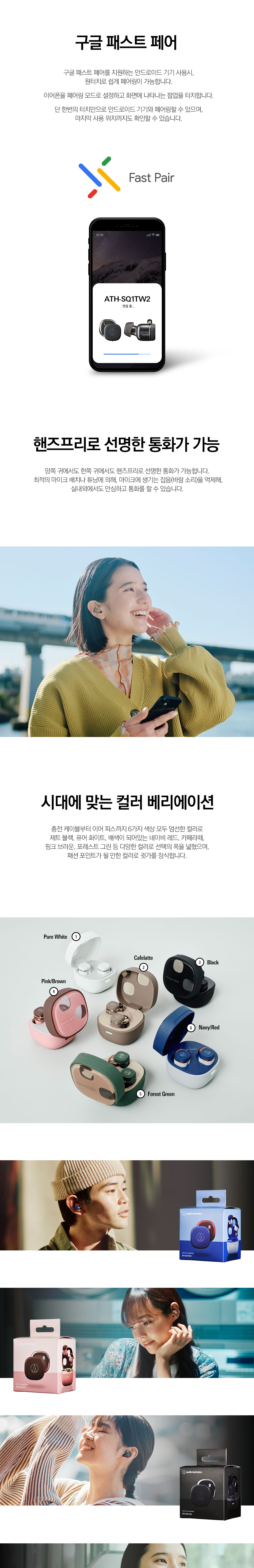 오디오테크니카 ATH-SQ1TW2 소형 완전 무선 블루투스 이어폰 핑크 브라운