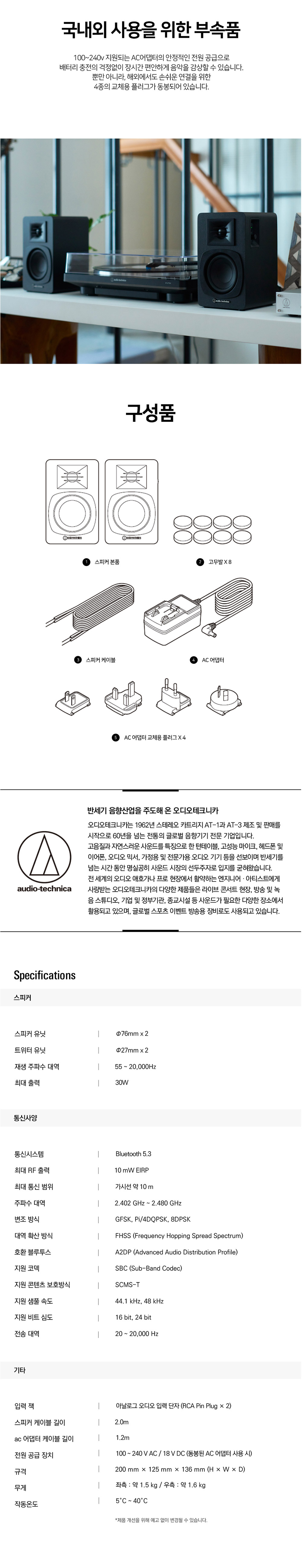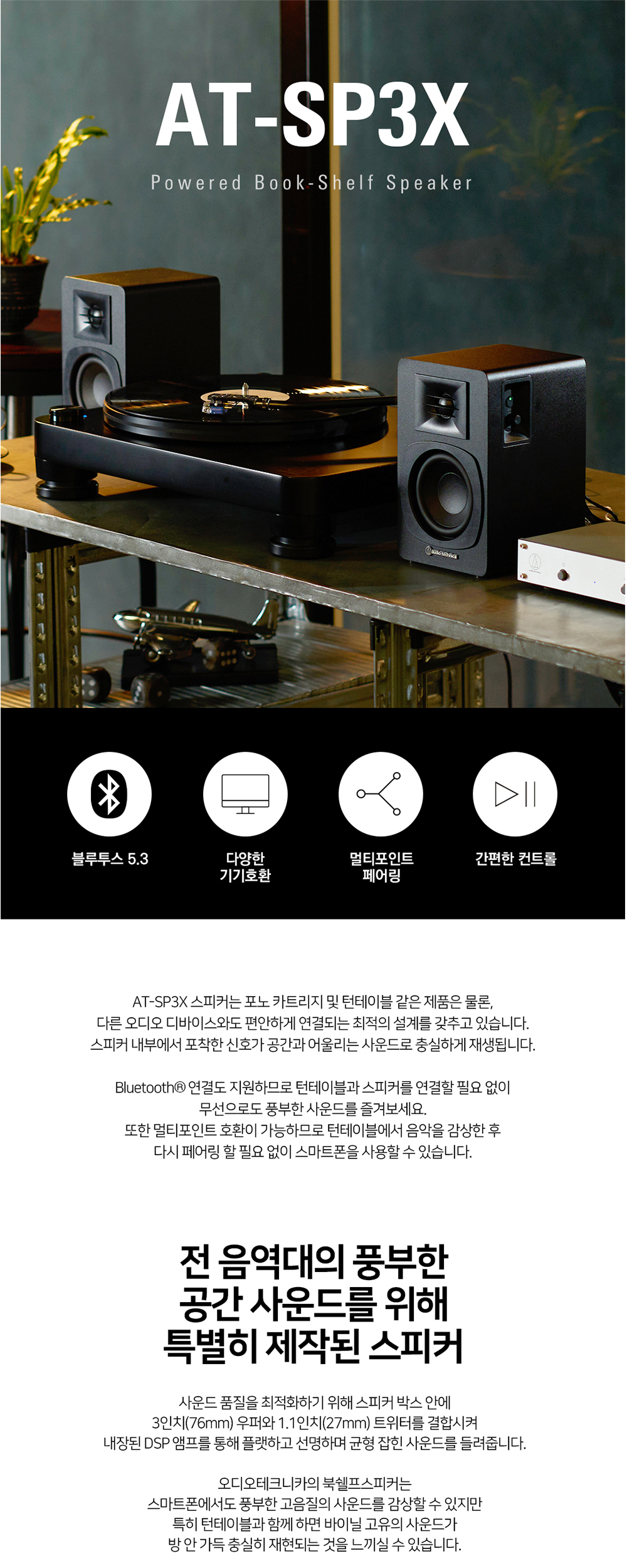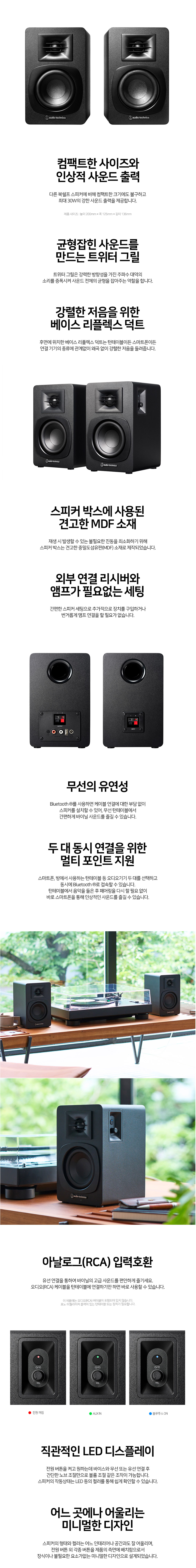 오디오테크니카 AT-SP3X 무선 블루투스 파워드 북쉘프 스피커