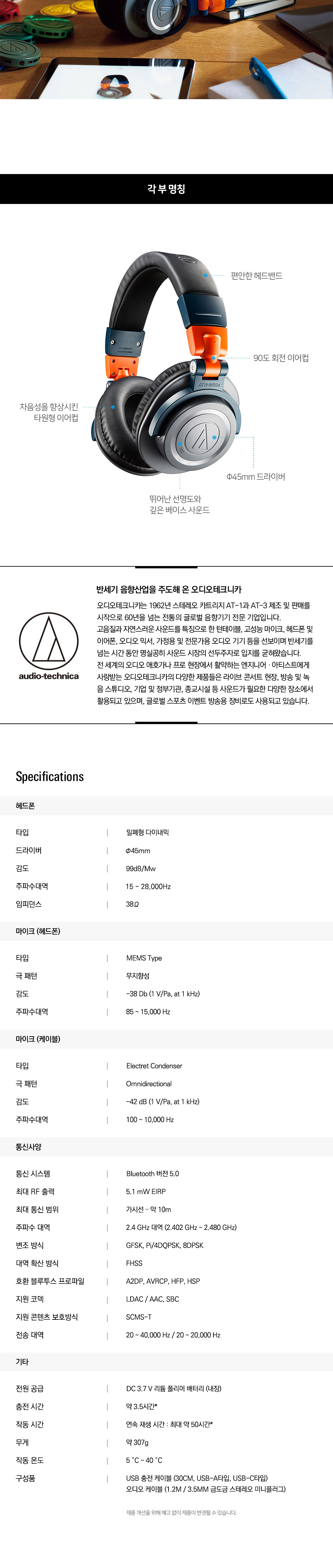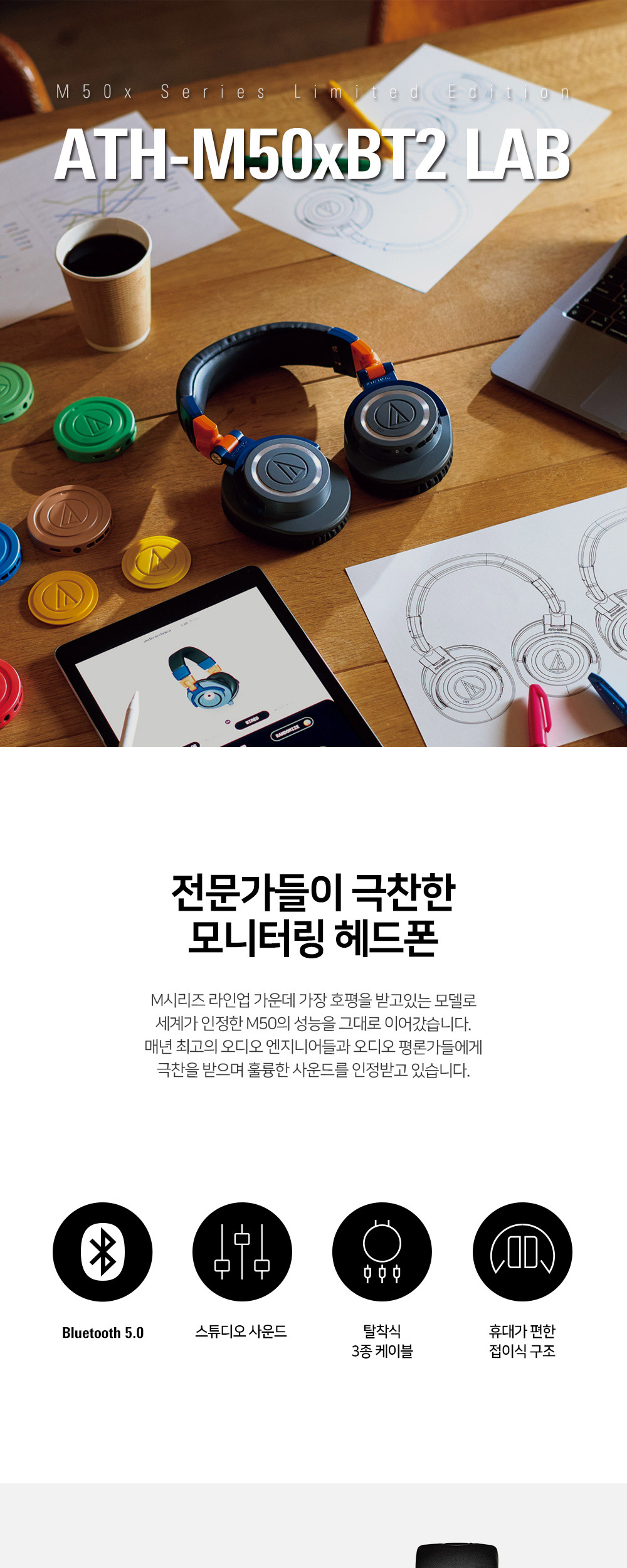 오디오테크니카 ATH-M50xBT2 LAB 리미티드 에디션 무선 블루투스 모니터링 헤드폰
