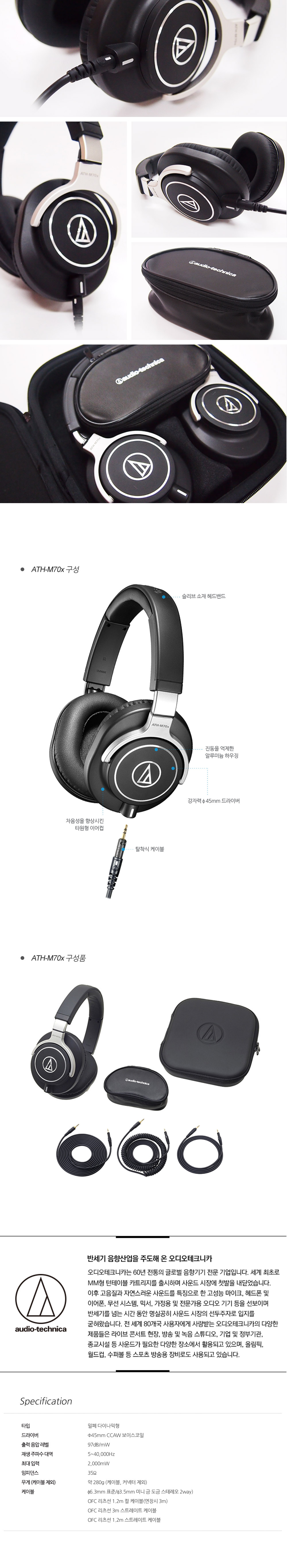 오디오테크니카 ATH-M70x 모니터링 헤드폰 프로패셔널 플래그십 모델
