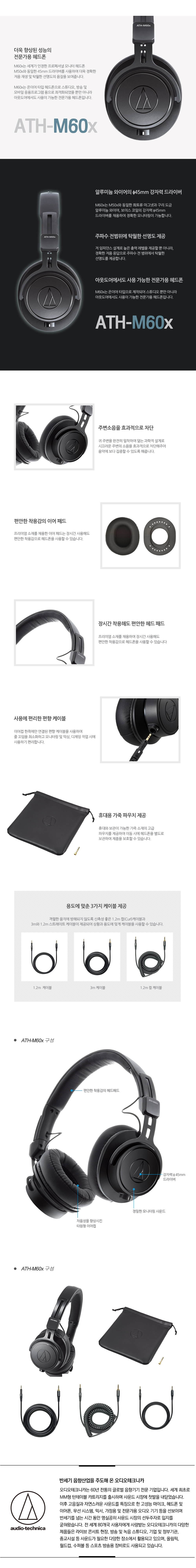오디오테크니카 ATH-M60x 온이어형 모니터링 헤드폰 프로페셔널 모델