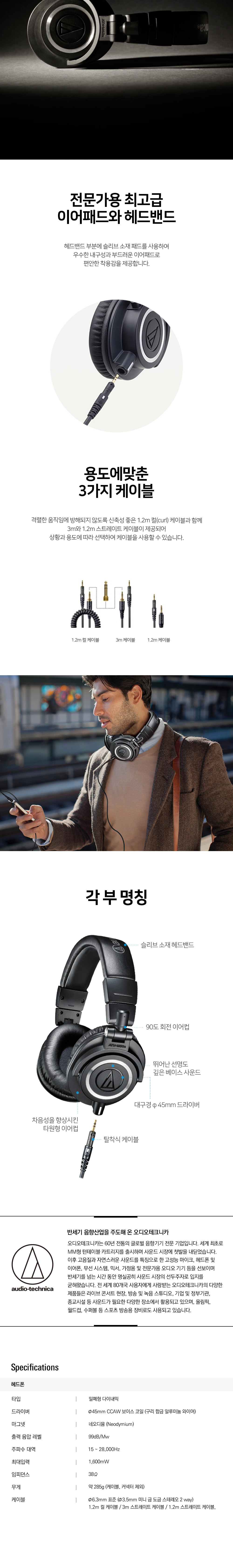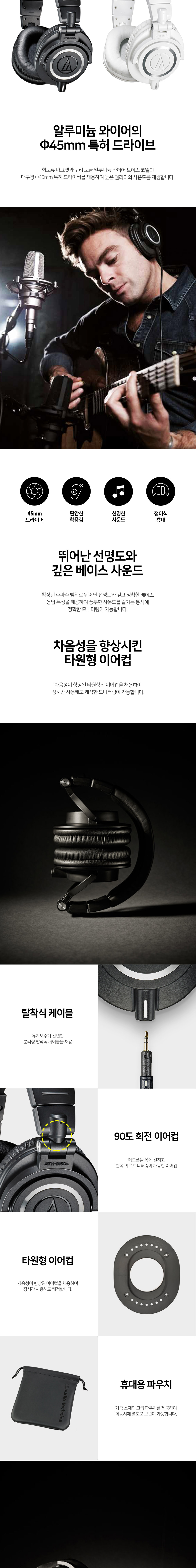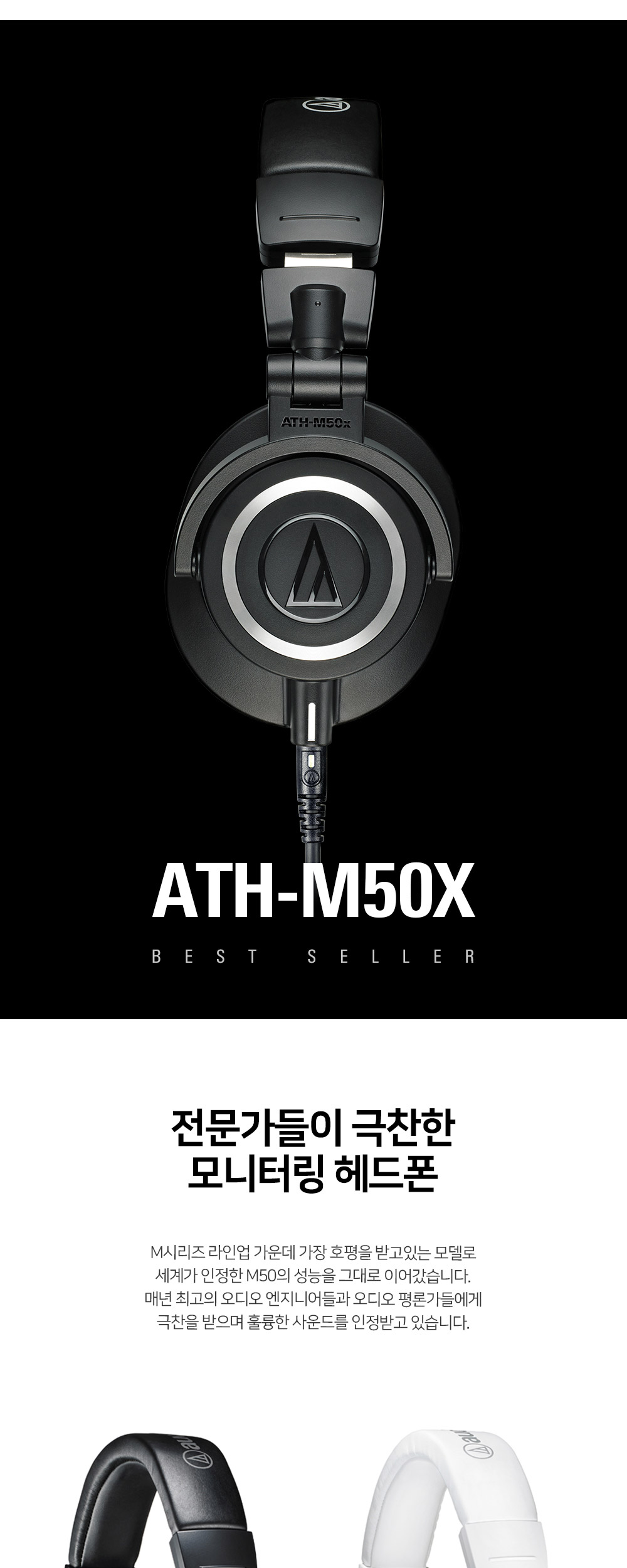 오디오테크니카 ATH-M50x 프로 스튜디오 모니터링 헤드폰 스테디셀러 모델 블랙