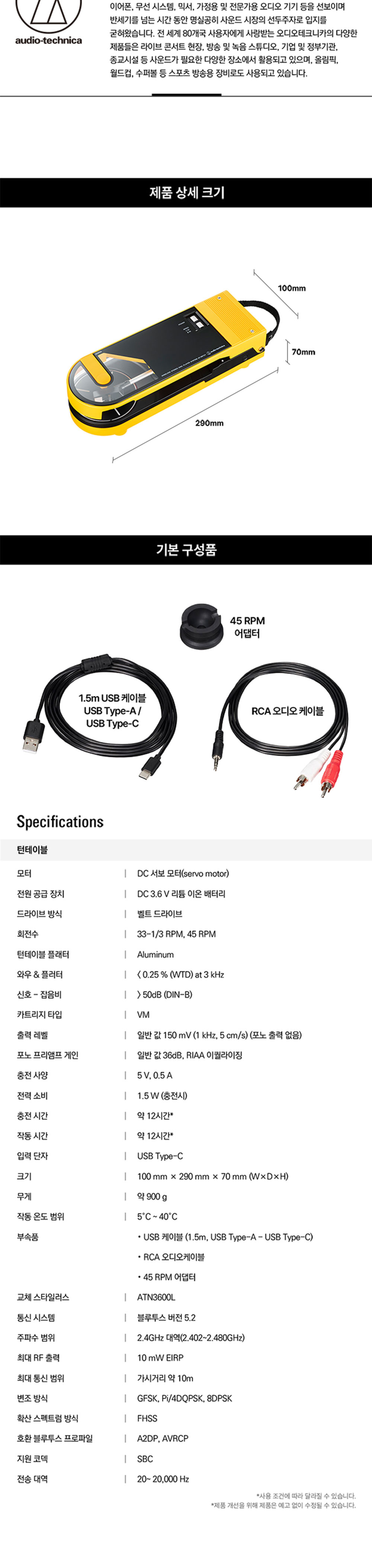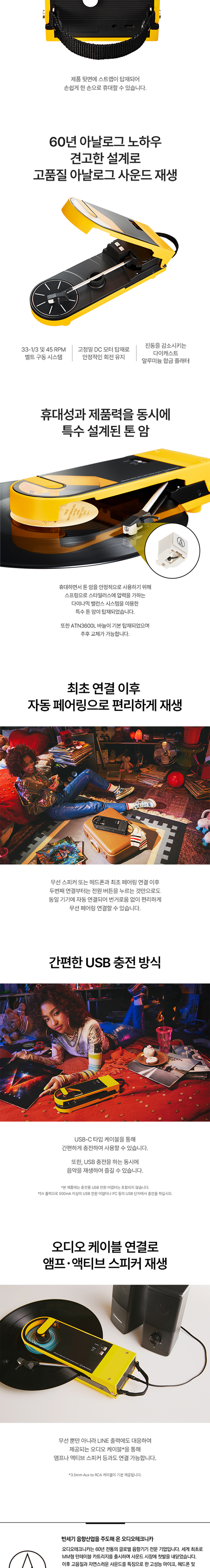 오디오테크니카 AT-SB727 휴대용 무선 블루투스 턴테이블 옐로우