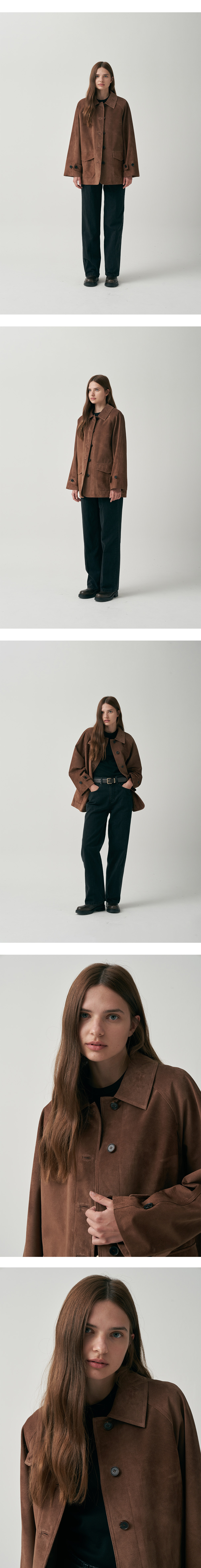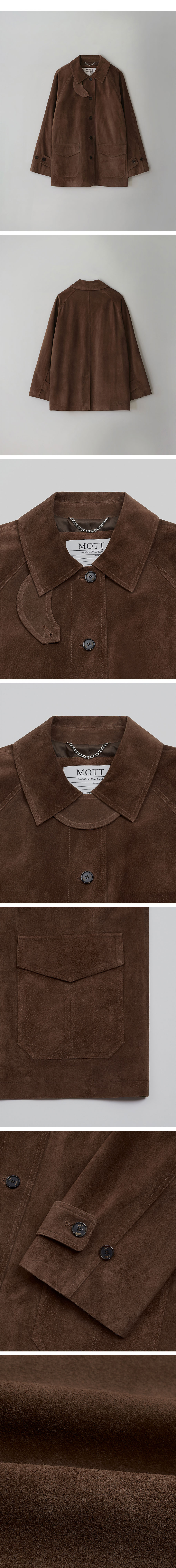 - 리얼 돈피 Hogleather 100%, 천연소재의 스웨이드 - 표면이 고급스럽고 소프트한 소재감의 프리미엄 자켓 - 래글런 소매 - 소매단 비조, 넥 패널 디테일 - 하프 기장 - 안감 속주머니 - 소뿔 단추 - 체인 라벨 - 프런트 5버튼의 여밈구조